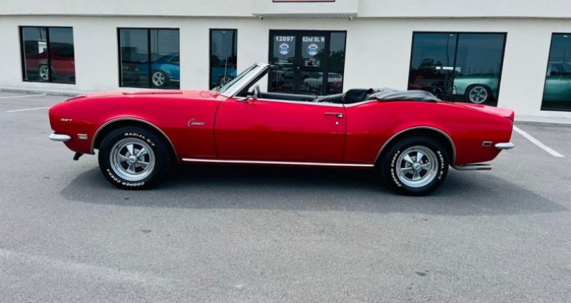 1968 Chevy Camaro Convertible, Red exterior, Black interior, Convertible Body Type, Automatic Transmission, 327 V8 Engine, 0 Mileage, Power Steering, Headers, Black Convertible Top, Black Bucket Seat Interior with Center Console and Staple Shifter, Cragar SS Wheels on Raised White Letter Tires, Vintage AC, Dakota Gauges, CVF Racing, Wilwood Brakes, RideTech Suspension options available, Financing and shipping services offered, No Warranty, Contact 727-761-0603 for more info.. Provenance : Florida. Disponibilité : environ 7 semaines, clés en main. 47 500 € tout compris (importation, taxes, procédure d'immatriculation). Annonce publiée le 26/11/2025