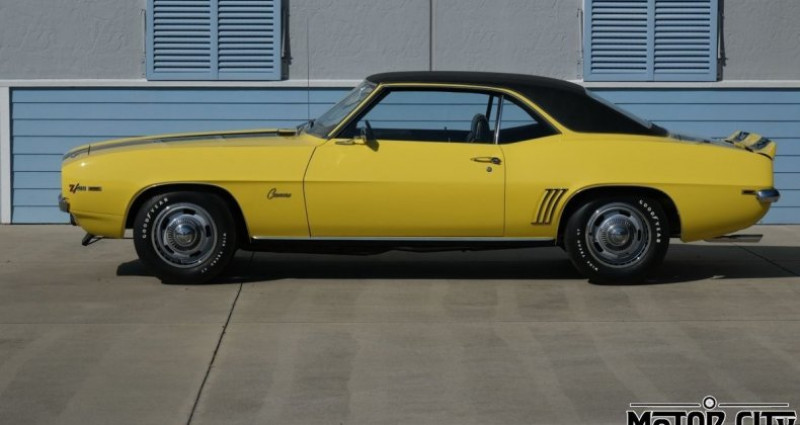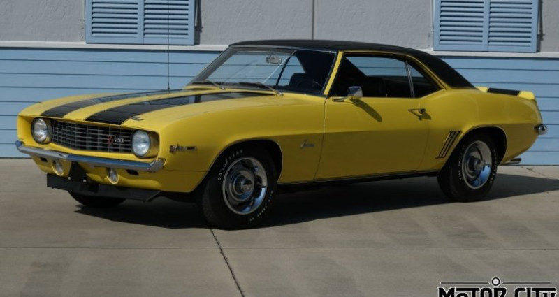 1969 Chevrolet Camaro, Stock #: GLS225, Exterior Color: Daytona Yellow, Interior Color: Black, Transmission: 4 Speed Manual, Engine: 302 V8, Mileage: 0. Provenance : Florida. Disponibilité : environ 7 semaines, clés en main. 118 000 € tout compris (importation, taxes, procédure d'immatriculation). Annonce publiée le 27/11/2025