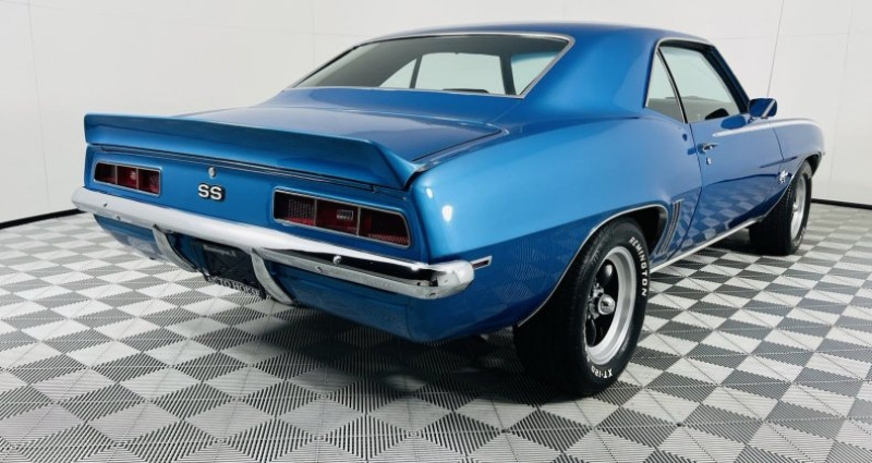 1969 Chevrolet Camaro SS, 350SBC, automatic trans with overdrive, long tube headers, power steering, power disc brakes, dual exhaust, bucket seats, floor shift, clean undercarriage, clean trunk, working dash clock, serviced and inspected, located at Auto House of Bloomington, 4 Currency Dr, Bloomington IL 61704. Provenance : Illinois. Disponibilité : environ 7 semaines, clés en main. 59 500 € tout compris (importation, taxes, procédure d'immatriculation). Annonce publiée le 27/11/2025