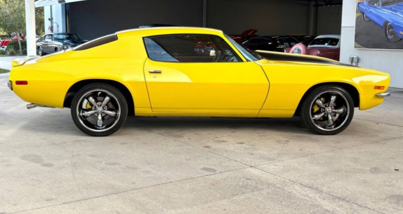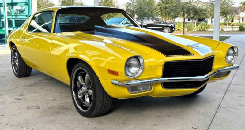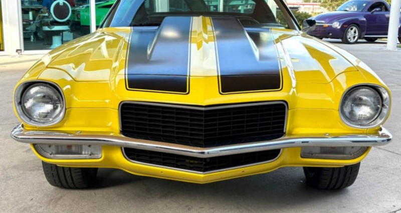 1970 Chevrolet Camaro, Stock #: SN3094, Exterior Color: Yellow, Interior Color: Black, Body Type: Coupe, Transmission: 700R4 automatic overdrive, Engine: 350-350hp V8, Mileage: 71, 143, Features: 350-350hp engine, 700R4 automatic overdrive, power steering, 4-wheel power disc brakes, GM 12 bolt rear end, rear spoiler, cowl hood, bucket seats, factory console, factory shifter, factory tachometer, air conditioning, PPG base coat clear coat paint, custom 18-inch Black Coy Mags, Grant steering wheel, restored in 2019.. Provenance : Florida. Disponibilité : environ 7 semaines, clés en main. 54 000 € tout compris (importation, taxes, procédure d'immatriculation). Annonce publiée le 29/11/2025