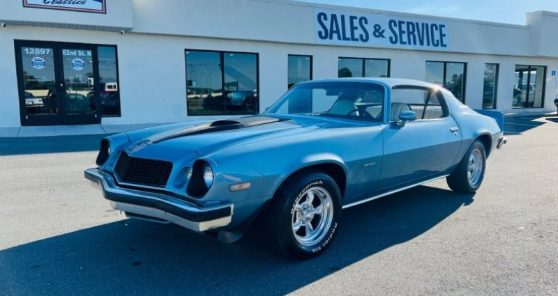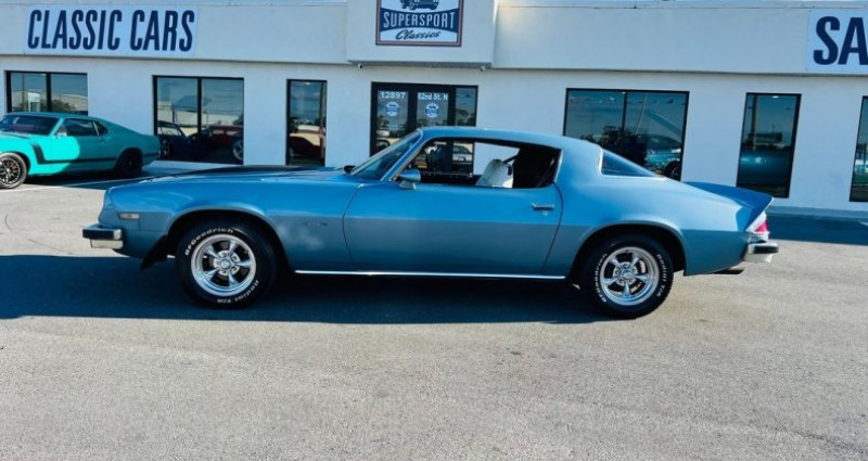 350 V8, 4-Speed Manual Transmission, Power Steering, Power Disc Brakes, Aftermarket A/C, White Bucket Seat Interior with Center Console, American Racing Wheels on Raised White Letter Tires, Blue Exterior, Light Blue Finish, Muscle Car, Seamless Virtual Buying Process, Upgrades available (Vintage AC, Dakota Gauges, CVF Racing, Wilwood Brakes, RideTech Suspension), Full Service Dealership, Financing assistance, Shipping available, No Warranty. Provenance : Florida. Disponibilité : environ 7 semaines, clés en main. 29 000 € tout compris (importation, taxes, procédure d'immatriculation). Annonce publiée le 29/11/2025