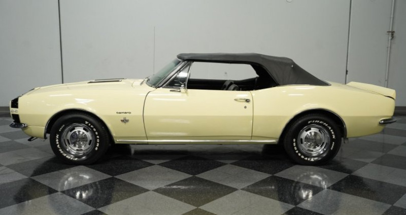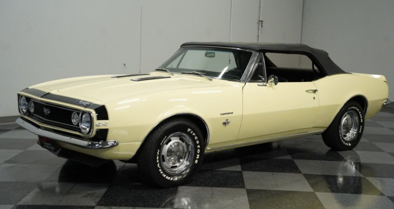 - Année : 1967 - Modèle : Camaro SS 350 Tribute Convertible - Couleur extérieure : Butternut Yellow - Couleur intérieure : Noir - Type de carrosserie : Cabriolet - Boîte de vitesses : 4 vitesses manuelle - Transmission : Propulsion arrière (RWD) - Moteur : V8 de 350 cubic-inches - Suspension : - Avant : ressorts hélicoïdaux, amortisseurs, barre de torsion - Arrière : ressorts à feuilles, barre de torsion - Freins : - Avant : Freins à disque - Arrière : Freins à tambour - Roues : 14 pouces de roues originales Camaro OEM - Pneumatiques : 225/70R14 (à l'avant et à l'arrière) - Refroidissement : Radiateur en aluminium avec deux ventilateurs électriques - Système d'échappement : Double échappement avec muffler après-marche - Top : Plateau noir convertible en vinyle avec fenêtre arrière en plastique - Radio : AM/FM/Cassette original (apparaît original) - Haut-parleurs : Situés dans la dashboard - Commandes de radio : Placées sous la dashboard - Auxiliaires : Trois panneaux supplémentaires de vitesse sous le radio (situés correctement). Provenance : Georgia. Disponibilité : environ 7 semaines, clés en main. 51 000 € tout compris (importation, taxes, procédure d'immatriculation). Annonce publiée le 03/12/2025