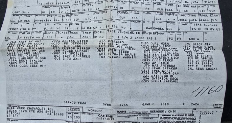 - Marque : Chevrolet - Modèle : Camaro - Année : 1976 - Couleur extérieure : Jaune - Intérieur : Noir - Type de carrosserie : Coupé - Moteur : 305 cubic inch small block Chevy - Boîte de vitesses : Automatique - Transmission : Rear-wheel drive - Propriétaire : 1 - Kilomètres sur l'odomètre : 74, 290 - Détail d'optionnalité : Hautement optionné - Vendu neuf à Altoona le 02/09/1975 à Bill Book Chevrolet - Authentique papier de vente disponible - Seules visites à appointment prévues - Livraison locale uniquement (pas de livraison internationale) - Achats en liquide ou achat via eBay avec protection de sécurité - Véhicule nécessite un peu de TLC - Véhicule à 45 ans, pas un véhicule neuf.. Provenance : Pennsylvania. Disponibilité : environ 7 semaines, clés en main. 16 000 € tout compris (importation, taxes, procédure d'immatriculation). Annonce publiée le 03/12/2025