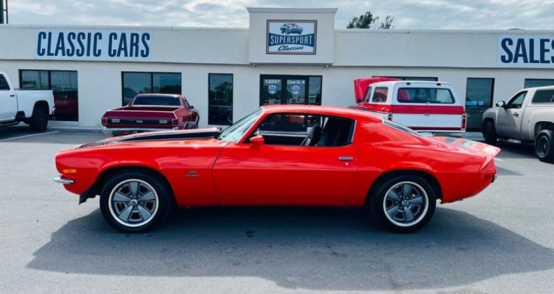 - Marque : Chevrolet - Modèle : Camaro - Année : 1971 - Type : Coupe - Couleur extérieure : Orange - Couleur intérieure : Noir - Transmission : Automatique (TH 400) - Moteur : 454 V8 Big Block - Freins : 4-Pistolets Wilwood Disques - Rack de direction : à puissance - Allumage : Edelbrock Intake - Jambes de contrôle : Tubulaires (hautes et basses) - Connecteurs de châssis : Subframe - Refroidisseur : Aluminium avec ventilateurs électriques - Echappement : collecteurs avec échappement en acier inoxydable - Instruments : Autometer Gauges - Sièges : Sièges noirs en cuir (sieges baquets) - Jantes : Nouvelles roues à l'effigie de la flèche (styles de roues de fabrication) à faible profil de pneumatiques - Remarque : Apparence et son musculaire, V8 performance construit fait beaucoup de puissance et c'est un plaisir de conduire ! Cette Camaro attirera certainement l'attention partout et fera fier son nouvel propriétaire ! N'hésitez pas à saisir votre occasion de posséder cette icône de voiture américaine de muscle à un prix intéressant !. Provenance : Florida. Disponibilité : environ 7 semaines, clés en main. 47 500 € tout compris (importation, taxes, procédure d'immatriculation). Annonce publiée le 03/12/2025