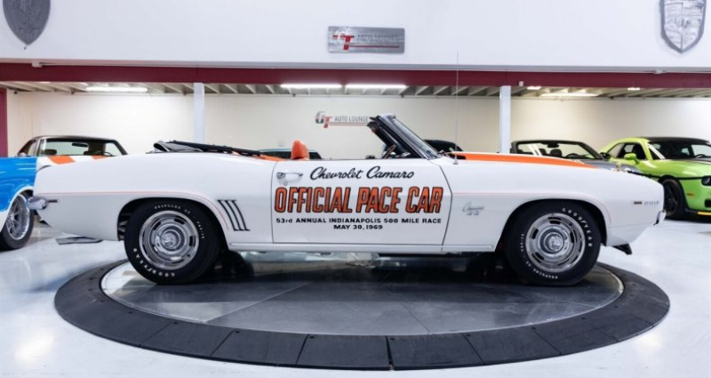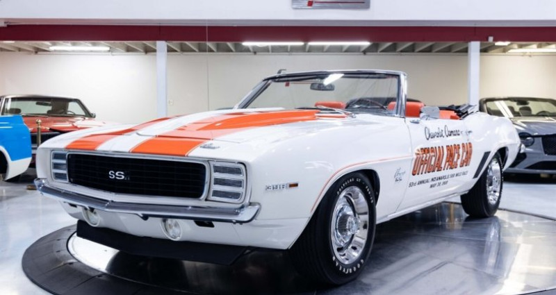 - Modèle : 1969 Chevrolet Camaro Z11 Indy Pace Car Convertible - Couleur extérieure : Blanc - Couleur intérieure : Orange - Toit : Convertible - Moteur : 396ci V8 - Boîte de vitesses : Manuelle à 4 vitesses (Muncie M20) - VIN : 124679N617205 - Photos : 88 - Caractéristiques et options : - Accents Z11 Pace Car avec équipement Super Sport et Package Rally Sport - Teinture de toit convertible motorisée - Freins et direction assistés - Intérieur délicat - Console centrale - Volant en bois - Certification : MacNeish Certifié (Jerry MacNeish de Camaro High Performance, Inc.) - Équipement supplémentaire : Visière signée Mario Andretti, Programme officiel de la 1969 Indy 500, Manual Owner, et une édition de Life Magazine (mars 1969) avec une annonce pleine page du Camaro Pace Car centrale. - Informations sur l'état et l'histoire du véhicule - Options de transport : enfermé ou ouvert - Contact : (916) 387-9997 - Lieu d'achat : 2421 Mercantile Dr Suite E, Rancho Cordova, CA 95742. Provenance : California. Disponibilité : environ 7 semaines, clés en main. 146 500 € tout compris (importation, taxes, procédure d'immatriculation). Annonce publiée le 02/12/2025
