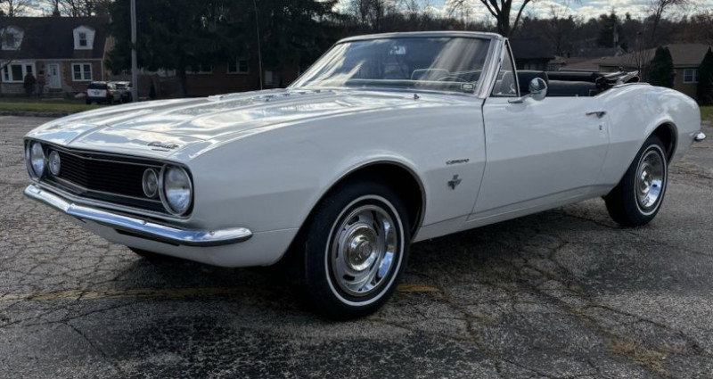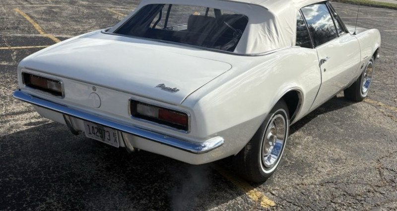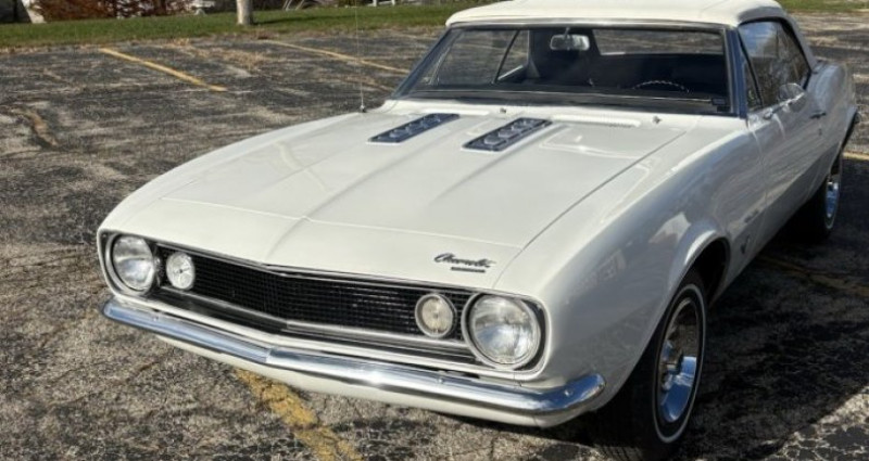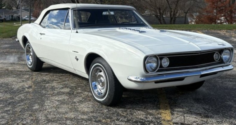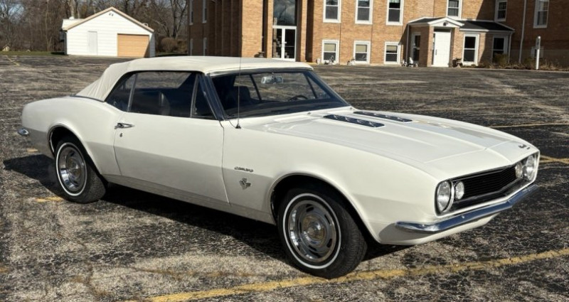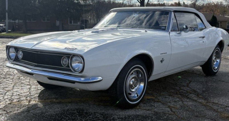 - Année : 1967 - Modèle : Chevy Camaro convertible - Moteur : 327 - Carburateur : 4 barrel (quadrajet) - Boîte de vitesses : powerglide - Couleur : Ermine blanc (extérieur) / Bleu (intérieur original) - Top : manuel - Freins : freins à tambour - État : bien entretenu, conduit - Travaux récents : révision, freins, pneus, top manuel, remplacement de toutes les jointures de vitres, remplacement des coussins des sièges avant, remplacement du centre du coffre (peut-être), peinture rafraîchie, sablage et polissage - Taille de kilométrage : non mentionné. Provenance : Illinois. Disponibilité : environ 7 semaines, clés en main. 45 000 € tout compris (importation, taxes, procédure d'immatriculation). Annonce publiée le 03/12/2025