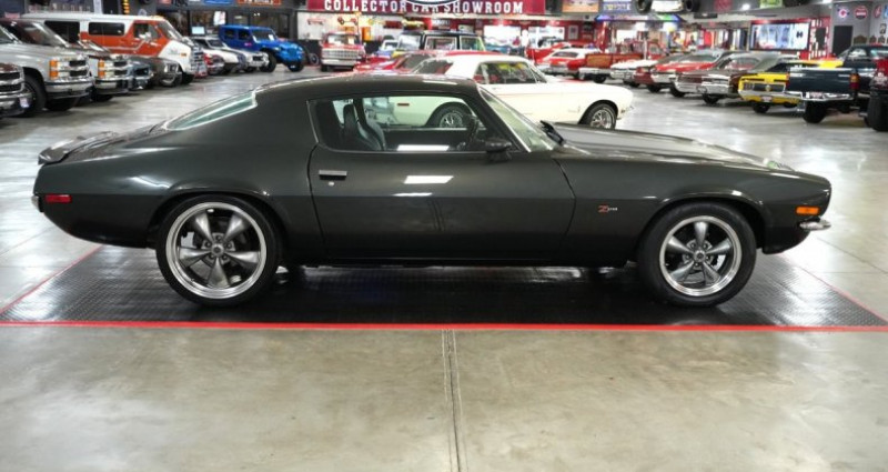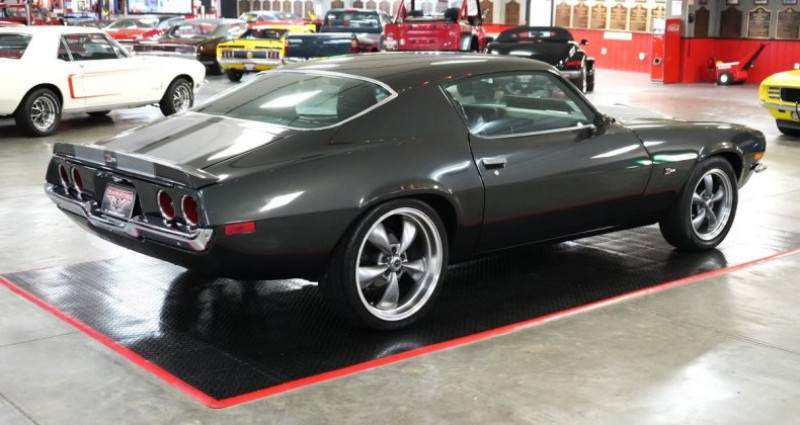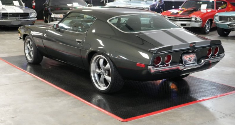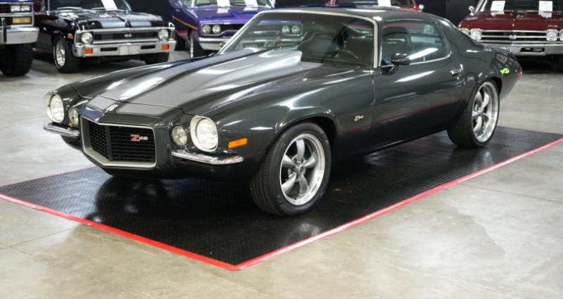 - Marque : Chevrolet - Modèle : Camaro Z/28 - Année : 1973 - Couleur extérieure : Vert métallisé sombre - Couleur intérieure : Noir - Type de carrosserie : Coupé - Boîte de vitesses : Manuelle 4 vitesses - Moteur : 402 Big Block Chevy V8 - Pneus : Performance, roues avant 17, arrière 20 - Equipements : Freinage assisté, freinage à disques 4 roues, transmission 4 vitesses manuelle, boîte de vitesses Muncie, pont arrière GM 12-bolt avec rapport de réduction agressif 3.90, refroidisseur aluminium, ventilateurs électriques double, intake Edelbrock Performer RPM, carburateur Demon 4-barrel, distributeur HEI. Provenance : Pennsylvania. Disponibilité : environ 7 semaines, clés en main. 49 000 € tout compris (importation, taxes, procédure d'immatriculation). Annonce publiée le 04/12/2025