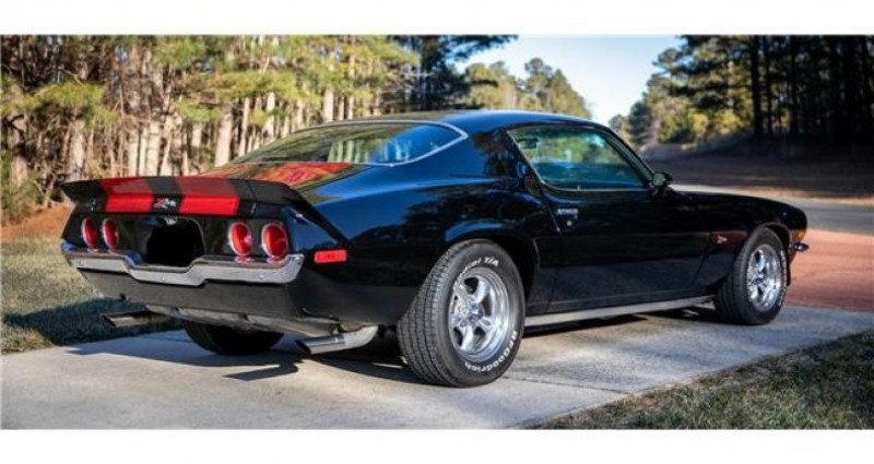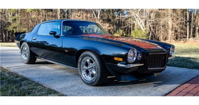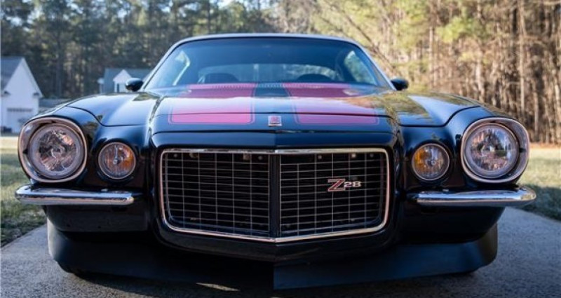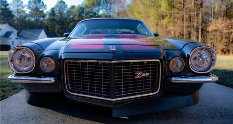 - Marque : Chevrolet - Modèle : Camaro Z28 - Année : 1971 - Couleur extérieure : Noir avec bandes rouges - Couleur intérieure : Noir - Moteur : 383 cid V8 de BluePrint Engines - Boîte de vitesses : Tremec 5-vitesse manuelle - Transmission : Manuelle - Kilométrage : 9 500 - Intérieur : Sièges baquets, console centrale, radio stéréo personnalisé, fenêtres électriques, volant SS (volant RS inclus). Provenance : North Carolina. Disponibilité : environ 7 semaines, clés en main. 60 500 € tout compris (importation, taxes, procédure d'immatriculation). Annonce publiée le 11/12/2025