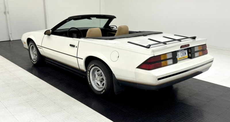 - Année : 1987 - Modèle : Chevrolet Camaro Convertible - Type : 2 portes - Couleur extérieure : Blanc - Équipement extérieur : Bandes noires et dorées, ailes arrière noires, toit en toile noire en bon état, support de bagages sur le coffre - Couleur intérieure : Cuir marron et panneaux de porte diagonaux en cuir marron, sièges arrière peu utilisés, volant 80's, tableau de bord avec 5 jauges, climatisation, radio Delco - Moteur : 305ci V8, 170 chevaux, carburateur 4-barrel - Boîte de vitesses : 700R4 4-vitesse automatique - État général : 84 171 miles (kilométrage vérifié) - État de la carrosserie : Peinture de surface rouillée dans le dessous, quelques imperfections sur le pare-chocs avant et des grilles cassées - État de la suspension : Suspension à ressorts hélicoïdaux avant et arrière, barre anti-roulis arrière - État de la transmission : Travaux sur la boîte de vitesses et l'arbre de transmission - État de la carrosserie : Peinture de surface rouillée dans le dessous, quelques imperfections sur le pare-chocs avant et des grilles cassées - État de la suspension : Suspension à ressorts hélicoïdaux avant et arrière, barre anti-roulis arrière - État de la transmission : Travaux sur la boîte de vitesses et l'arbre de transmission - État de la carrosserie : Peinture de surface rouillée dans le dessous, quelques imperfections sur le pare-chocs avant et des grilles cassées - État de la suspension : Suspension à ressorts hélicoïdaux avant et arrière, barre anti-roulis arrière - État de la transmission : Travaux sur la boîte de vitesses et l'arbre de transmission - État de la carrosserie : Peinture de surface rouillée dans le dessous, quelques imperfections sur le pare-chocs avant et des grilles cassées - État de la suspension : Suspension à ressorts hélicoïdaux avant et arrière, barre anti-roulis arrière - État de la transmission : Travaux sur la boîte de vitesses et l'arbre de transmission. Provenance : , USA. Disponibilité : environ 7 semaines, clés en main. 24 500 € tout compris (import, taxes, procédure d'immatriculation). Annonce publiée le 13/12/2025