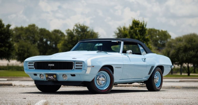 - Marque : Chevrolet - Modèle : Camaro Custom LS3 Convertible Restomod - Année : 1969 - Couleur extérieure : Carolina Blue - Couleur intérieure : Noir - Type de carrosserie : Cabriolet - Transmission : Manuelle - Boîte de vitesses : RWD - Mileage : 11 111 - Moteur : LS3 6.2L GM Performance crate engine - Travaux : Restauration complète - Équipement : Holley Accessory Drive System, FiTech Throttle Body, Roto-Fab Cold Air Intake, Superior Radiator, Holley Terminator X Engine Management, Holden Long Tube Headers, Vintage Air Air Conditioning, CPP Quick Ratio Power Steering Gearbox, Dakota Digital VDX Gauges, Deluxe Comfort Weave Interior, Detroit Speed Electric RS Hideaway Headlight Kit, 12-bolt Rear End avec 3.73:1 Gears, Redline Tires 215/70/15 F 235/70/15 R.. Provenance : Texas. Disponibilité : environ 7 semaines, clés en main. 115 500 € tout compris (importation, taxes, procédure d'immatriculation). Annonce publiée le 13/12/2025