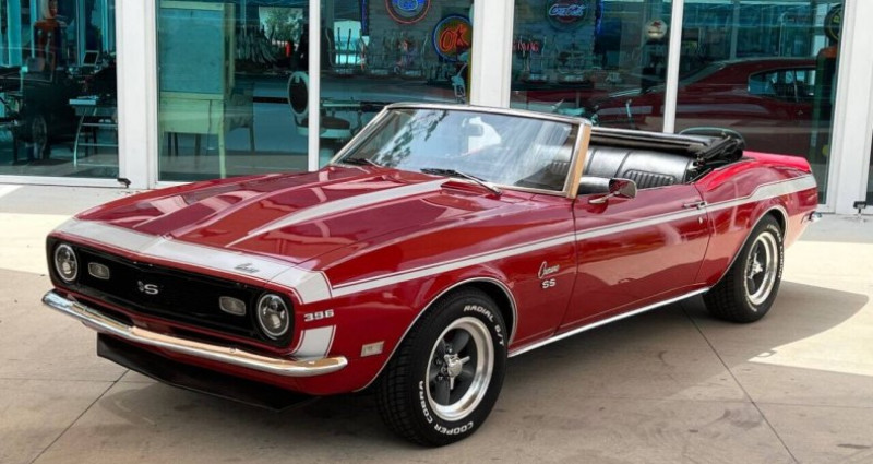 - Marque : Chevrolet - Modèle : Camaro - Année : 1968 - Type de carrosserie : Cabriolet - Couleur extérieure : Rouge - Couleur intérieure : Noir - Moteur : 396 V8 - Boîte de vitesses : 4 vitesses manuelle - Kilométrage : 87 146 - Freins : 4-pistons avant CPP - Roues : 5-jantes gris et polies - Pneus : Cooper Cobra Radial GT - Peinture : PPG base/clear - Stripes : Blanches - Spoiler : D80 plein largeur arrière - Chin spoiler avant - Stereo radio : après-marche - Console : bois - Siège : noir - Dash : classique - Chromage : avant et arrière bonne qualité - Seller : Skyway Classics. Provenance : Florida. Disponibilité : environ 7 semaines, clés en main. 62 000 € tout compris (importation, taxes, procédure d'immatriculation). Annonce publiée le 13/12/2025