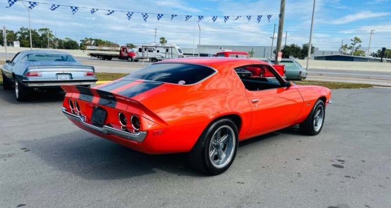 - Marque : Chevrolet - Modèle : Camaro - Année : 1971 - Moteur : 454 Big Block V8 - Boîte de vitesses : Automatique (TH 400) - Freins : 4-Wheel Wilwood Disc - Couleur extérieure : Orange - Couleur intérieure : Noir - Sièges : Bucket - Roues : Nouveaux roues à l'effigie de la flèche de Bowtie sur des pneus de profil bas - Autres équipements : Radiateur en aluminium avec ventilateurs électriques, tuyaux d'échappement en acier inoxydable, jauges Autometer, suspensions améliorées, etc.. Provenance : Florida. Disponibilité : environ 7 semaines, clés en main. 46 000 € tout compris (importation, taxes, procédure d'immatriculation). Annonce publiée le 17/12/2025