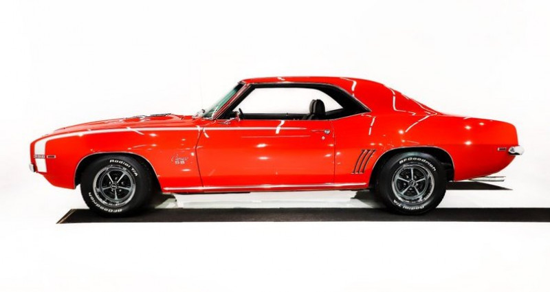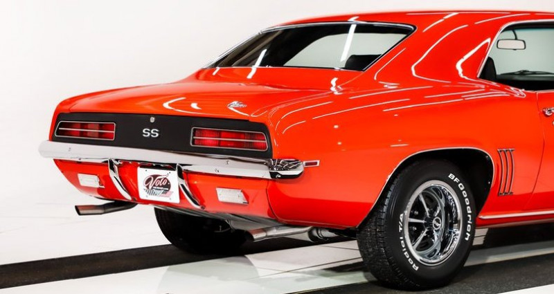 - Marque : Chevrolet - Modèle : Camaro - Année : 1969 - Moteur : 396 ci, 350 ch - Couleur extérieure : Hugger Orange (code 72-72) - Intérieur : Houndstooth - État général : Très exquis, travaux de restauration de carrosserie complète - Travaux : Body off frame rotisserie restoration - Kilométrage : Pas mentionné - Options : Protect-o-Plate, invoice, window sticker, air conditionné, radio, climatisation, jantes 14 pouces SS, BFGoodrich Radial T/A pneus, freins à disques avant, système de freinage redessiné, système d'échappement redessiné, système de carburant redessiné, boîte automatique Turbo 400, différentiel arrière à 3.73 posi gears. Provenance : , USA. Disponibilité : environ 7 semaines, clés en main. 117 500 € tout compris (import, taxes, procédure d'immatriculation). Annonce publiée le 17/12/2025