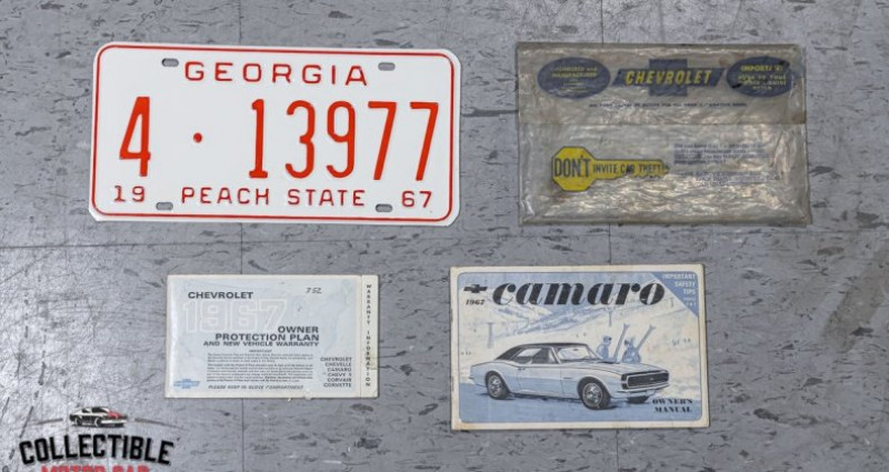 - Marque : Chevrolet - Modèle : Camaro RS - Année : 1967 - Numéro de série : 124377N177283 - Couleur extérieure : Or - Couleur intérieure : Noir - Transmission : Boîte manuelle à 4 vitesses - Moteur : 327 V8 - Kilométrage : 88 555 - Équipements : Booster de frein visible sous capot, roues Rally Chevrolet avec bandes de couleur, roues de rechange Fuzion Touring 225/60R15, emblèmes « Camaro » et « Rally Sport (RS) », émissions d'échappement polies, documentation originale de 1967 (manuel d'utilisateur, livret de garantie, plaque de protection, permis de conduire géorgien « Peach State '67 »). Provenance : Georgia. Disponibilité : environ 7 semaines, clés en main. 62 500 € tout compris (importation, taxes, procédure d'immatriculation). Annonce publiée le 18/12/2025