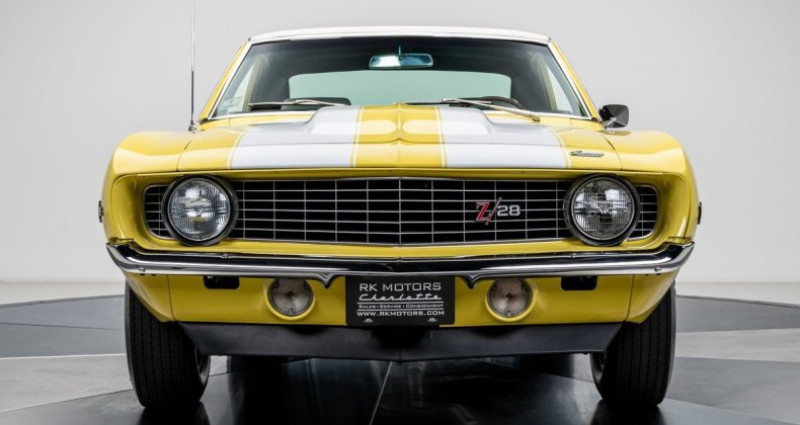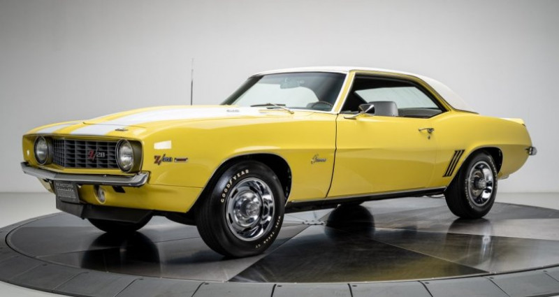 - Marque : Chevrolet - Modèle : Camaro Z/28 - Année : 1969 - Moteur : DZ-code 302 V8 - Transmission : 4 vitesses manuelle (Muncie M20) - Boîte de vitesses : 4 vitesses manuelle - Couleur extérieure : Jaune Daytona - Couleur intérieure : Tissu blanc Houndstooth - Toit : Vitre pliable blanc - Kilométrage : 54, 175 miles (non converti). Provenance : North Carolina. Disponibilité : environ 7 semaines, clés en main. 136 000 € tout compris (importation, taxes, procédure d'immatriculation). Annonce publiée le 19/12/2025