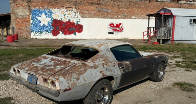 - Marque : Chevrolet - Modèle : Camaro SS RS - Année : 1970 - Numéro d'inventaire : 0980 - Couleur extérieure : Rouge - Couleur intérieure : Noir - Transmission : Boîte de vitesses manuelle à 4 rapports - Moteur : 396 L34 V8 - Mileage : 0 - État : Solide, complet (manque le vitre arrière et les accessoires extérieurs) - Titre propre (clean title) - Situation : Celeste, TX 75423 - Contact : Tony, 505-503-3274. Provenance : Texas. Disponibilité : environ 7 semaines, clés en main. 46 000 € tout compris (importation, taxes, procédure d'immatriculation). Annonce publiée le 23/12/2025