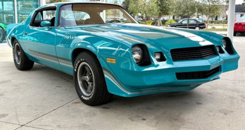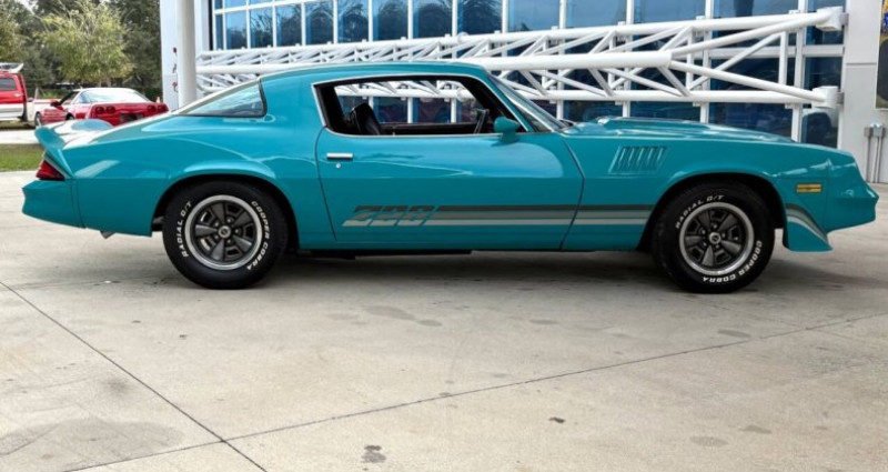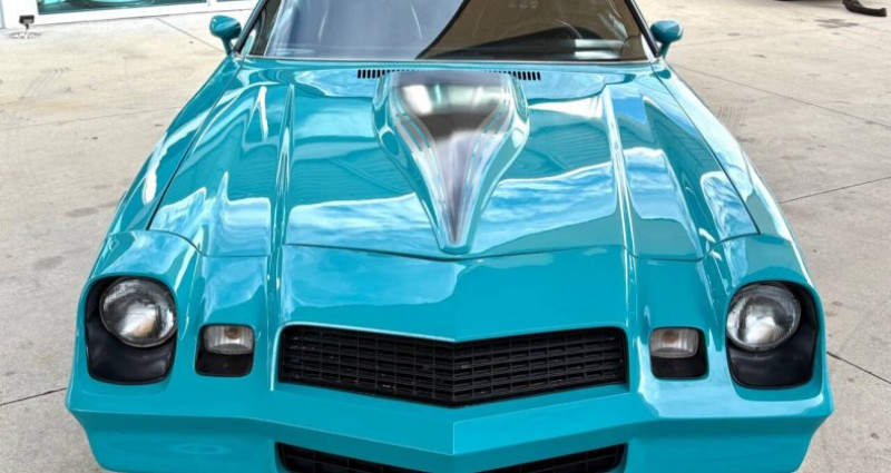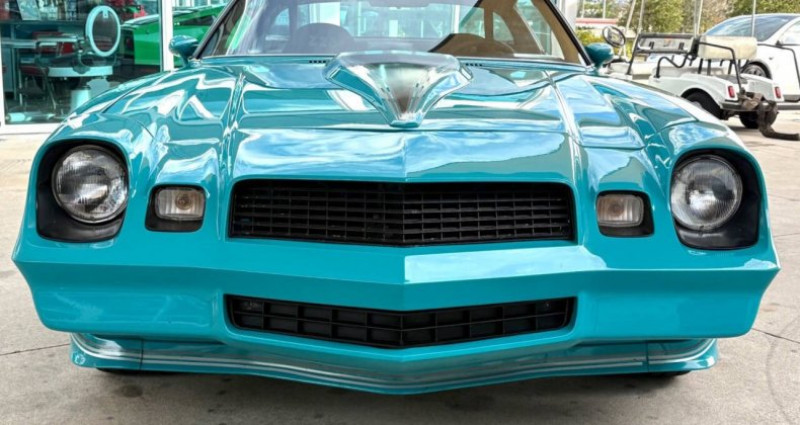 - Marque : Chevrolet - Modèle : Camaro - Année : 1979 - Numéro de stock : SN3138 - Couleur extérieure : Teal - Couleur intérieure : Noir - Type de carrosserie : Coupe - Transmission : TH350 3-vitesse automatique - Moteur : 350 V8 - Kilométrage : 44, 855 miles - Options : Power Steering, Power Disc Brakes, Factory Tachometer, Aftermarket Stereo System, Bucket Seats, Center Console, Power Windows, Custom Teal Paint with Stripes, Front and Rear Spoilers, Correct Z28 Wheels. Provenance : Florida. Disponibilité : environ 7 semaines, clés en main. 32 500 € tout compris (importation, taxes, procédure d'immatriculation). Annonce publiée le 23/12/2025