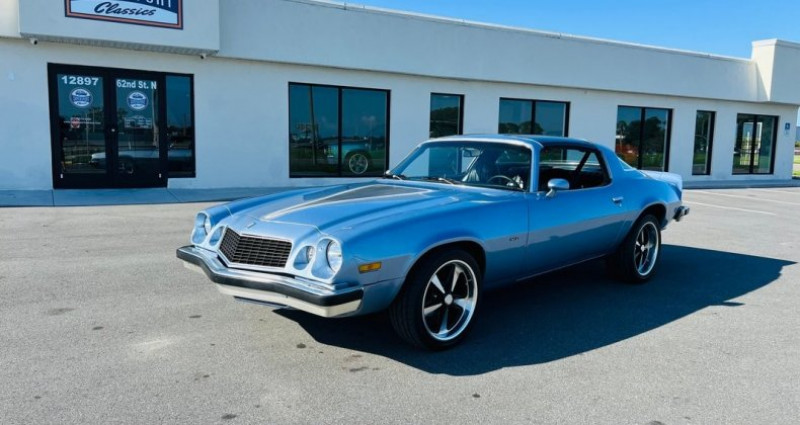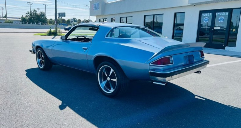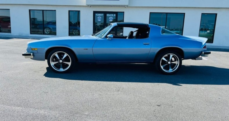 - Marque : Chevrolet - Modèle : Camaro - Année : 1976 - Moteur : 350 V8 - Boîte de vitesses : Automatique - Couleur extérieure : Bleu clair - Couleur intérieure : Noir - Packages : Hurst T-Tops Package - Équipements : Climatisation, freinage assisté, direction assistée, radio amélioré, jantes US Mag avec pneus de profil bas, sièges au centre avec le levier de vitesses - Kilométrage : 0 miles (non précisé dans les données fournies). Provenance : Florida. Disponibilité : environ 7 semaines, clés en main. 26 000 € tout compris (importation, taxes, procédure d'immatriculation). Annonce publiée le 27/12/2025