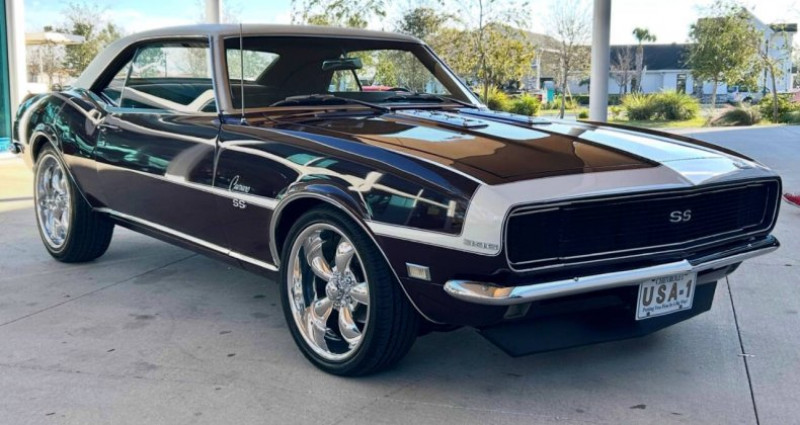 - Marque : Chevrolet - Modèle : Camaro SS - Année : 1968 - Couleur extérieure : Marron - Couleur intérieure : Noir - Type de carrosserie : Hatchback - Transmission : Manuelle - Moteur : 396 V8 - Kilométrage : 47 784 - Suspension : Triangulée quatre-point - Freins : Disques avant - Boîte de vitesses : Muncie 4-vitesse manuelle - Radiateur : Aluminium haute efficacité - Intake et carburateur : Edelbrock Premium - Échappements : Flowmaster - Dispositif de contrôle de ride : Amortisseurs à réglage adaptable - Moteur L78 396 cubic inch V8 : 375 ch - Transmission robuste Muncie 4-vitesse manuelle - Contrôle de direction et freinage : Power Steering et Power Disc Brakes. Provenance : Florida. Disponibilité : environ 7 semaines, clés en main. 61 500 € tout compris (importation, taxes, procédure d'immatriculation). Annonce publiée le 30/12/2025
