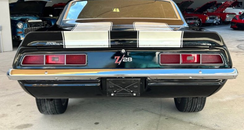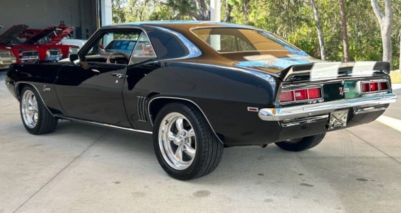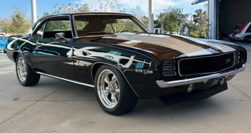 - Marque : Chevrolet - Modèle : Camaro - Année : 1969 - Type de carrosserie : Hatchback - Couleur extérieure : Noir - Couleur intérieure : Noir et Houndstooth - Moteur : 350 V8 - Boîte de vitesses : manuelle Tremec TKX 5-vitesse - Transmission : manuelle - Kilométrage : 1 303 - Moteur reconstruit et modifié en 1973 - Dual exhaust - Jantes 5-spoke mag noires avec pneus noirs de bordure - Système audio amélioré - Système de climatisation rétro - Freins Wilwood - Pneus Nitto neufs - Badges Camaro et Z28 - Dash, console et sièges en bon état - Moteur peint en peinture de course Chevrolet factory orange sur le bloc et les têtes - Aluminium manifold - 4-barrel carbureur - Valve covers à logo Chevrolet noirs - Tuyaux d'échappement noirs - Plaque d'immatriculation : SN2606. Provenance : Florida. Disponibilité : environ 7 semaines, clés en main. 65 500 € tout compris (importation, taxes, procédure d'immatriculation). Annonce publiée le 30/12/2025