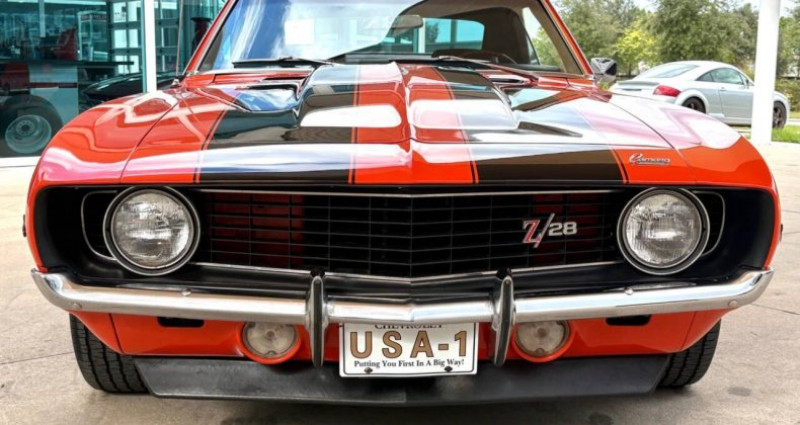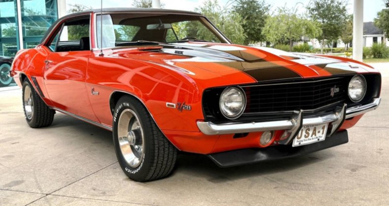 - Marque : Chevrolet - Modèle : Camaro - Année : 1969 - Numéro d'inventaire : 2487-FL - Couleur extérieure : Orange Hugger - Couleur intérieure : Noir - Type de carrosserie : Hatchback - Transmission : manuelle - Moteur : 302 V8 DZ - Kilométrage : 85, 384 - Roues : 15 pouces Rally avec trim chrome et garniture centrale - Pneus : Goodyear Wide Tread GT - Intérieur : Noir avec sièges Comfort Weave - Console avec tachymètre et instruments de bord - Volant en bois de teck et levier de vitesses Hurst avec boule de vitesses blanche 4-speed - Stereo Kenwood amélioré - Capot avec soufflant d'induction spécial - Toit en vinyle noir et garde-boue deluxe noir - Spoilers avant et arrière - Moteur remplacé sous garantie en 1970 avec marquage CE - Transmission Muncie 4-vitesse manuelle - Freins à disque et direction assistée - Moteur 302 V8 DZ avec marquage True X77, vérifiant son authenticité en tant que véritable Z/28 - Intake et couvercles de soupapes en aluminium finis, améliorant l'aspect esthétique et la performance du moteur - Carbureur Holley à haut rendement et collecteurs d'échappement en céramique - Échappement double - Compartiment moteur avec un aspect original - Freins à disque et direction assistée - Roues de 15 pouces Rally avec trim chrome et garniture centrale - Pneus Goodyear Wide Tread GT, ajoutant à son charme authentique - Intérieur noir avec sièges Comfort Weave - Console avec tachymètre et instruments de bord - Volant en bois de teck et levier de vitesses Hurst avec boule de vitesses blanche 4-speed - Stereo Kenwood amélioré - Capot avec soufflant d'induction spécial - Toit en vinyle noir et garde-boue deluxe noir - Spoilers avant et arrière - Moteur remplacé sous garantie en 1970 avec marquage CE - Transmission Muncie 4-vitesse manuelle - Freins à disque et direction assistée. Provenance : Florida. Disponibilité : environ 7 semaines, clés en main. 96 500 € tout compris (importation, taxes, procédure d'immatriculation). Annonce publiée le 30/12/2025