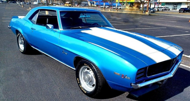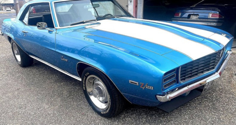 - Marque : Chevrolet - Modèle : Camaro - Année : 1969 - Numéro de stock : 96202613, 124379N586480 - Couleur extérieure : Bleu / Blanc - Couleur intérieure : Noir - Type de carrosserie : SS, Cp. X 11 - Transmission : Boîte de vitesses à 4 rapports manuelle - Moteur : 8 cylindres - Kilométrage : 0 - VIN original : 124379NXXXXXX. Provenance : New Jersey. Disponibilité : environ 7 semaines, clés en main. 59 000 € tout compris (importation, taxes, procédure d'immatriculation). Annonce publiée le 31/12/2025
