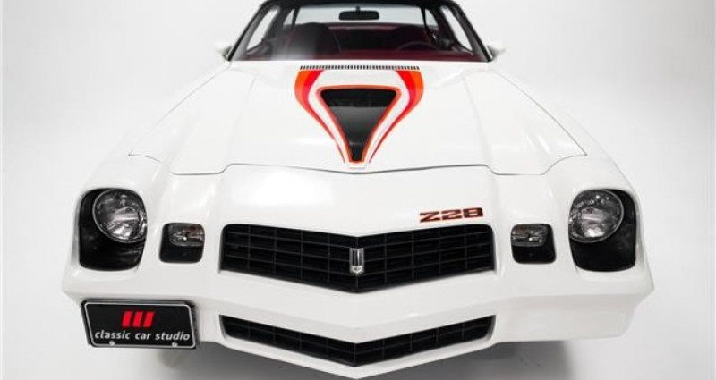 - Marque : Chevrolet - Modèle : Camaro - Année : 1979 - Moteur : 350 ci V8 - Boîte de vitesses : 3-vitesse automatique - Couleur extérieure : Blanc - Couleur intérieure : Rouge - Kilométrage : 39 722 miles (environ 63 722 km) - État : Original, bien entretenu - Travaux : Peinture originale, pas de travaux de corps - Options : AK1 DLX BLT & SH HAAD1 ALL TNTD GLASA51 BUCKET SEATS BS1 INSUL PKG BW1 DEL D/LID EMBBY1 F/R Z28 EMBB37 FRT & RR MAT SB80 ROOF DRIP MLDG GB81 DELT BDY ORN B89 BLK REVL MLDG GB93 DR EDGE GRD SD35 SPORT MIR L/RD55 FLOOR CONSOLE D80 RR SPOILER D88 SPORT STRIPE SD92 TAPE D/HANDLE F41 SPEC PERF SUS GU6 342 RATIO AXL G80 POSI AXLE J50 POWER BRAKES LM1 V8 350 4BBL M38 AUTO TRANS NA5 STD EMISSION SN65 SPACE SVR TIR P06 WHEEL TRIM RING QRZ GR70X15T93 BLK TAIL LP SUA1 HD BATTERY UN9 RADIO SUPPU05 DUAL HORN U15 GAGES INST U27 GLOVE BOX LIGU35 ELEC CLOCK U63 AM RADIO U76 W/S ANTENNA U80 REAR SPEAKER VK3 FRT LIC MTG ZK1 HOOD INSULATION OZ28 SPEC PRF PKG Z54 INTERIOR DECO 73A RED STRIPE #1741 CARMINE TRIM VIN : 1Q87L9L508867. Provenance : Missouri. Disponibilité : environ 7 semaines, clés en main. 43 500 € tout compris (importation, taxes, procédure d'immatriculation). Annonce publiée le 31/12/2025