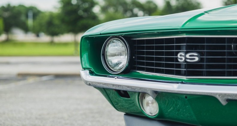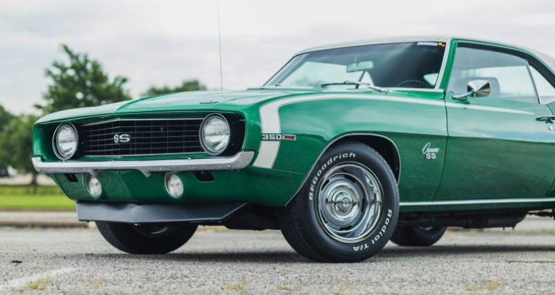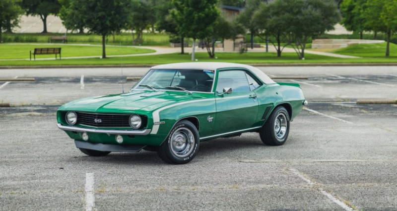 - Marque : Chevrolet - Modèle : Camaro SS - X55 true Super Sport - Année : 1969 - Couleur extérieure : Rallye Green - Couleur intérieure : Noir - Type de carrosserie : 2D Coupé - Transmission : Boîte manuelle 4 vitesses - Propulsion : RWD - Moteur : 350CI SBC V-8 (#3970010) - Kilométrage : 36, 801 Miles - Roues : Rally wheels - Pneus : BFGoodrich Radial T/A (nouveaux) - Options : Muncie 4-Speed Manual Transmission (#3925660), Hooker Super Competition Long Tube Headers, Edelbrock 4-Barrel Carburetor, HEI Ignition, Edelbrock Intake Manifold, Power Steering, Power Front Disc Brakes, Rear Drum, Heat Only, White Vinyl Top, Black Vinyl Bucket Seat Interior avec sièges d'avant, Custom Center Console, Dual 6x9 Boss Rear Speaker Setup, 12-Bolt Rear End, Dual Flowmaster Mufflers, Camaro SS Badging, Original Protect-O-Plate, Owner's Manual.. Provenance : Texas. Disponibilité : environ 7 semaines, clés en main. 75 500 € tout compris (importation, taxes, procédure d'immatriculation). Annonce publiée le 03/01/2026
