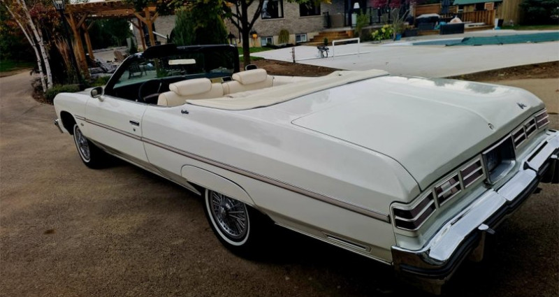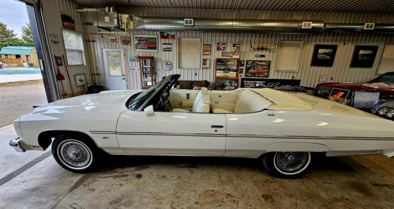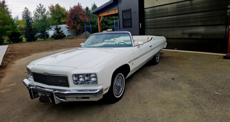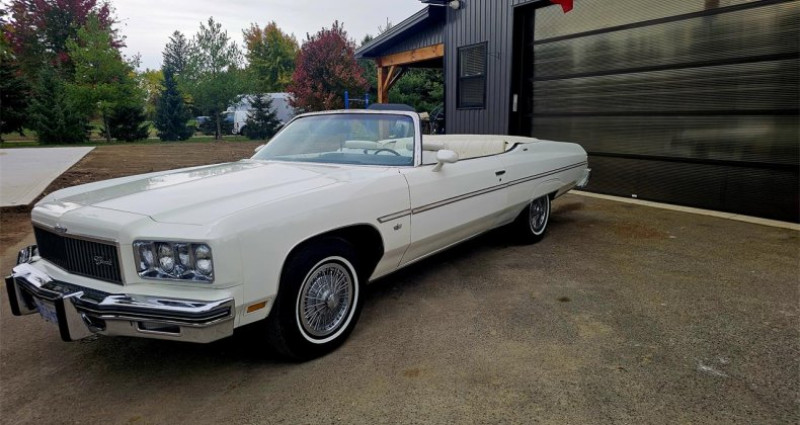 Le véhicule en question est une convertible Chevy Caprice Classic de 1975, de couleur triple blanc, présentant un état remarquable, parfait pour des croisées d'été avec le toit abaissé. C'est une voiture originale, sauf qu'elle a bénéficié d'une ré-peinture unique dans sa vie. Il s'agit d'une voiture solide et originale de qualité, peu fréquente sur le marché. Elle dispose d'échappement en acier inoxydable, batterie et pneus nouveaux, toit en très bon état, climatisation fonctionnelle, moteur et conduite qui excellent. Les fenêtres électriques fonctionnent à merveille, l'intérieur est très propre, sans déchirures sur le tableau de bord ou usure sur les sièges. La voiture est équipée d'un moteur 350, automatique, et comprend en plus son pneu de secours original et une couverture de voiture. Le toit rigide est également disponible.. Provenance : Ontario, USA. Disponibilité : 7 semaines, clés en main. 52 000 € tout compris (import, taxes, procédure d'immatriculation). Annonce publiée le 17/10/2025