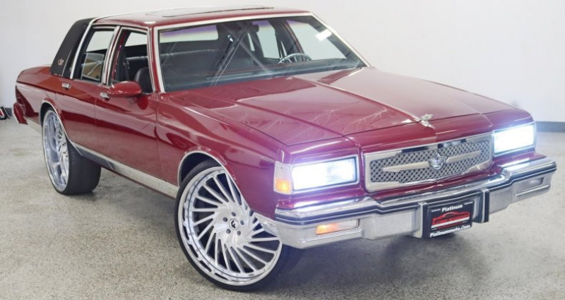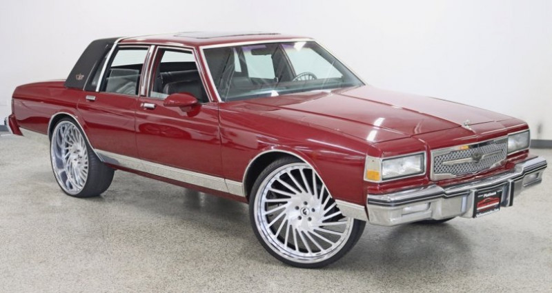 - Année : 1984 - Marque : Chevrolet - Modèle : Caprice Classic Custom - Moteur : LS - Couleur extérieure : Rouge - Couleur intérieure : Cuir noir/rouge avec tapis de tete en velours - Boîte de vitesses : Automatique - Transmission : Propulsion arrière - Roues : 26 pouces Forgiato (pneus Forgiato à l'avant et à l'arrière) - Équipement : Radio Kenwood écran tactile, lunette sky, système audio double sous-woofer personnalisé, panneau d'instrument Dakota Digital, volant Forgiato, siège conducteur réglable en hauteur, fenêtres électriques, pare-chocs chromés, phares xénon. Provenance : Illinois. Disponibilité : environ 7 semaines, clés en main. 43 000 € tout compris (importation, taxes, procédure d'immatriculation). Annonce publiée le 07/12/2025