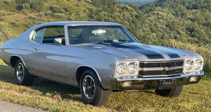 Ce véhicule est un Chevrolet Chevelle de 1970, équipé de l'option L78 396/375 puissance moteur à 4 vitesses, avec boîte de vitesses Muncie 21-Muncie. Le véhicule est peint en argent Cortez 14 avec bandes noires, avec intérieur de sièges baquets noirs (code de finition 756). Il est équipé d'un essieu arrière 12 bolt avec barre de stabilisation. Ce véhicule ne dispose pas de direction assistée. Il a été vendu neuf à Atlanta en Géorgie et a été restauré dans son état original, tout en étant dépourvu de son toit noir en vinyle d'origine. Il a été entièrement restauré à la demande il y a environ 7 ans, avec un soin particulier apporté à la propreté et au détail. Il est équipé d'un levier de vitesses Hurst. Il est important de noter que ce modèle est rare, puisqu'il n'en a été produit que 2144 exemplaires avec l'option L78 396/375 puissance moteur. Des photos supplémentaires peuvent être fournies à la demande.. Ce descriptif est basé sur les éléments communiqués par le propriétaire avec un traitement assisté. Merci pour votre indulgence en cas de formulation perfectible. Provenance : Virginia. Disponibilité : 7 semaines, clés en main. 97 500 € tout compris (importation, taxes, procédure d'immatriculation). Annonce publiée le 06/10/2025