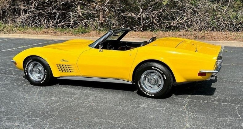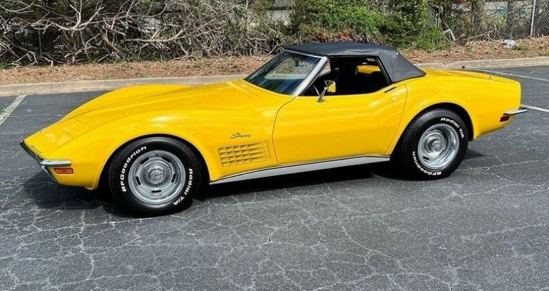 Un véhicule remarquable de 1971, un Chevrolet Corvette Stingray Cabriolet en couleur jaune 'Sunflower' correcte, équipé d'un moteur et d'une transmission manuelle 4 vitesses de numéros correspondants, avec une intérieur de cuir deluxe noir et un toit de cabriolet noir. Cette couleur et ce véhicule sont rares et prêts à être exploités. Les détails du véhicule : - Moteur de 350 CID conforme aux numéros - Transmission manuelle Muncie 4-vitesse - 270 chevaux - 360 Lbs. Ft. de couple - Ratio de compression de 8.5:1 - Plaque de protection originale fournie - Peinture 'Sunflower' jaune code-correcte - Intérieur de cuir deluxe noir code-correct - Top de cabriolet noir conforme - 82 000 milles réels - Direction, freinage, fenêtres électriques - Pneus BF Goodrich Radial T/A neufs à l'apparence - Jantes Rally avec des fermoirs et bandes - Radio AM/FM original - Stereo Bluetooth Alpine (caché sous le tableau de bord)Le véhicule fonctionne bien, change de vitesse sans problème et présente une esthétique intérieure et extérieure remarquable. Titre de propriété propre de la Californie.. Ce descriptif est basé sur les éléments communiqués par le propriétaire avec un traitement assisté. Merci pour votre indulgence en cas de formulation perfectible. Provenance : California. Disponibilité : 7 semaines, clés en main. 42 500 € tout compris (importation, taxes, procédure d'immatriculation). Annonce publiée le 06/10/2025