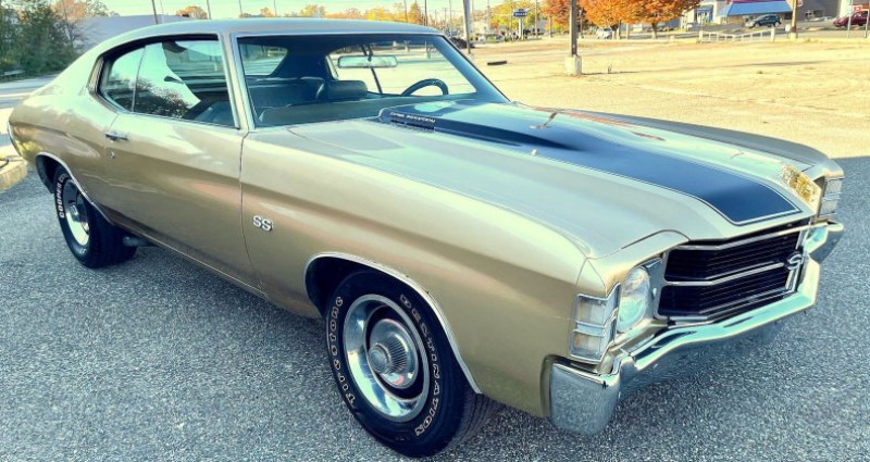 Le véhicule en question est un Chevrolet Chevelle SS de l'année 1971, numéro de VIN original 136371BXXXXXX, qui vient d'arriver en état original et solide. Sa carrosserie est en couleur dorée avec bandes noires, et elle est équipée de climatisation à fabrication originale. Le moteur est un V8 GM Vortech de 330 ch avec transmission automatique 350. Le véhicule est également doté de freins et de direction assistés, ainsi que d'équipements supplémentaires de luxe. Le véhicule est en très bon état, avec des planchers et coffre solides. La carrosserie est marquée par de petites zones de rouille dans les coins avant et à l'arrière, mais le véhicule est, dans l'ensemble, solide. Le vendeur dispose également de deux nouvelles plaques de carrosserie pour les coins avant, qu'il prépare à couper et à installer. Considérant la qualité de ce véhicule, il est un excellent investissement, les voitures de ce modèle étant de plus en plus difficiles à trouver sur le marché. Si vous souhaitez savoir plus de détails sur l'état du véhicule ou souhaiter faire une offre, veuillez contacter le vendeur au numéro 866-720-0987.. Ce descriptif est basé sur les éléments communiqués par le propriétaire avec un traitement assisté. Merci pour votre indulgence en cas de formulation perfectible. Provenance : New Jersey. Disponibilité : 7 semaines, clés en main. 33 500 € tout compris (importation, taxes, procédure d'immatriculation). Annonce publiée le 10/11/2025
