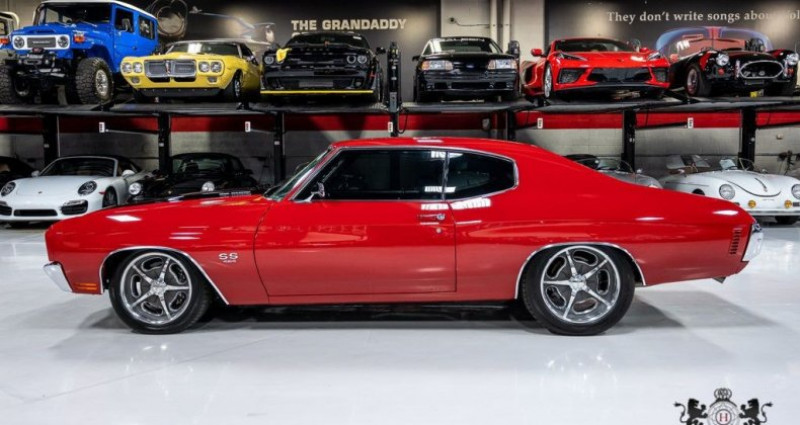 Ce 1970 Chevrolet Chevelle SS, rénové en 2019 par Color on Wheels, est décoré d'une peinture extérieure rouge (avec bande noire) et d'un intérieur noir cuir. Il est équipé d'un moteur LS3 525 V8, de la boîte de vitesses manuelle 6-vitesse T56, d'axes arrière de 4:10 Motive, de freins Wildwood, de suspensions avant et arrière à réglage de hauteur, d'un radiateur Griffen, d'une pompe à carburant et de réservoirs à carburant, d'un amplificateur de booster de frein hydraulique, d'une colonne de direction Ididit, de roues Schott et de système de freinage de voiture vintage A/C Vintage Air. Pour plus de détails, appelez Mark Hubbard au 800-839-4490. Il est signalé qu'il a parcouru 4 111 miles.. Ce descriptif est basé sur les éléments communiqués par le propriétaire avec un traitement assisté. Merci pour votre indulgence en cas de formulation perfectible. Provenance : Arizona. Disponibilité : 7 semaines, clés en main. 114 500 € tout compris (importation, taxes, procédure d'immatriculation). Annonce publiée le 18/11/2025