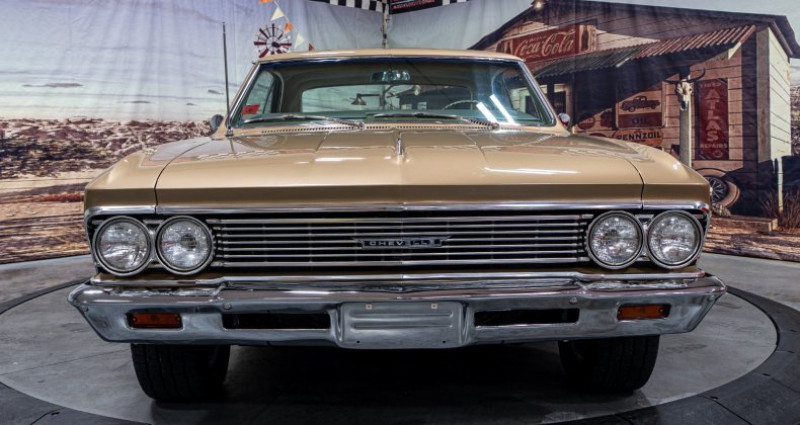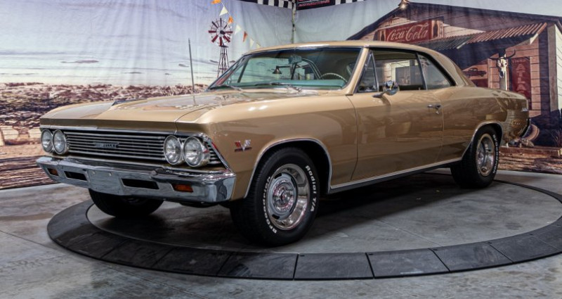 Informations fournies par le vendeur : 1966 Chevrolet Chevelle Malibu Sport CoupeSandalwood tan metallic (TT) exteriorMedium fawn interior396/360 HP ci V8 engineHolley four-barrel carburetorAluminum intake manifoldChrome valve coversDual exhaustFour-speed manual transmissionFront disc brakesRear drum brakes15-inch rally wheelsBFGoodrich Radial T/A tires'66 body linesClean chrome and trimFactory badgingFront bucket seatsRear bench reupholstered in medium fawnSandalwood tan metallic dashboardNew color-coordinated carpetWood-rimmed steering wheel120-mph speedometerCombination gauges for fuel level, battery status, coolant temperature, oil pressureKnee-knocker tachometerFloor-mounted shifterCenter consoleFront and rear seat beltsManual-crank windowsHeaterPush-button AM radioCD changer mounted in trunkLighted glove boxIndependent setup with coil springs and control arms up frontSolid axle with coil springs and trailing arms in rearMeticulously restored undercarriageOriginality undercarriageRefinished trunk to original specsSparser paint finishPlaid-style trunk matFull-size mounted spare tireFloor jackOriginal window stickerOriginal trim tagOriginal North Carolina certificate of titleOwner's guideRuns and drives strong. Provenance : Pennsylvania. Disponibilité : environ 7 semaines, clés en main. 71 000 € tout compris (importation, taxes, procédure d'immatriculation). Nous représentons les acheteurs sur le marché nord-américain et sécurisons chaque étape du processus, de la sélection à la mise en circulation. Annonce publiée le 19/11/2025