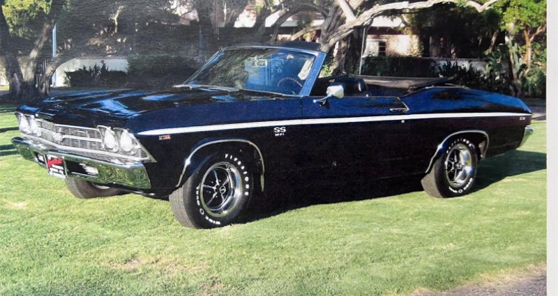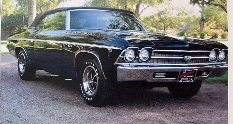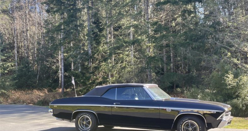 1969 Chevrolet Chevelle SS Convertible • Black • V8 • 396cid/350hp • Automatic • 12-bolt posi-traction rear • Factory air • Power disc brakes • Power steering with tilt wheel • Tic Toc Tach • Bucket seats with console shifter • Power top • SS package • Factory air conditioning. Provenance : Washington, USA. Disponibilité : environ 7 semaines, clés en main. 77 500 € tout compris (import, taxes, procédure d'immatriculation). Annonce publiée le 25/11/2025