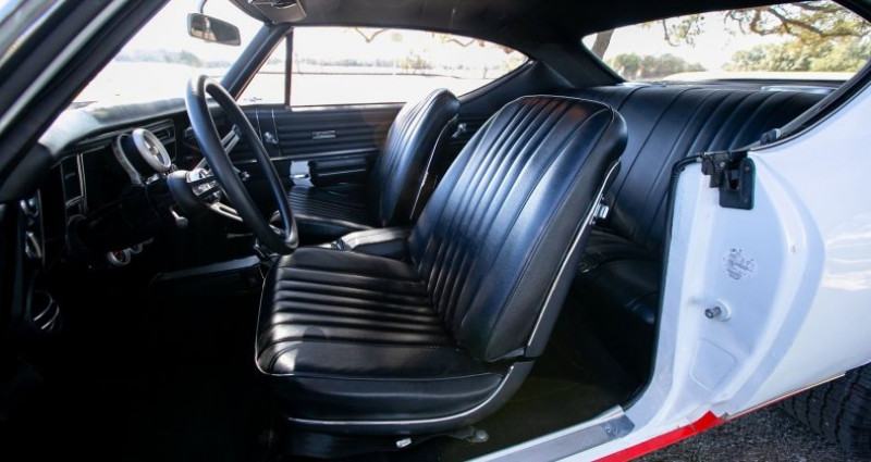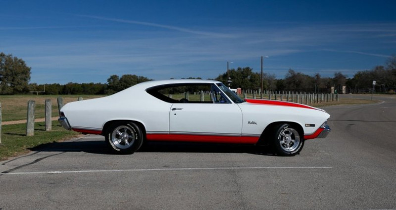 1968 Chevrolet Chevelle, 350 V8, 4 Speed Automatic, White Exterior, Black Interior, 75121 Mileage, VIN 136378K122446, 5.7L Vortec 350 V8 with upgrades, rebuilt 700R4 automatic transmission, 12-bolt posi-traction rear end, heavy sway bars, Torq-Thrust wheels, BF Goodrich tires, electronic ignition, power steering, power four-wheel disc brakes, cold-blowing air conditioning, Bluetooth vintage-style stereo, amplifier, 6x9 speakers, 10-inch subwoofer, Kansas City, Kansas assembly plant, 10D, 1968 Model year, 2-door sport coupe, Medium Teal imitation leather interior, Tuxedo Black original paint. Provenance : Texas. Disponibilité : environ 7 semaines, clés en main. 46 000 € tout compris (importation, taxes, procédure d'immatriculation). Annonce publiée le 26/11/2025