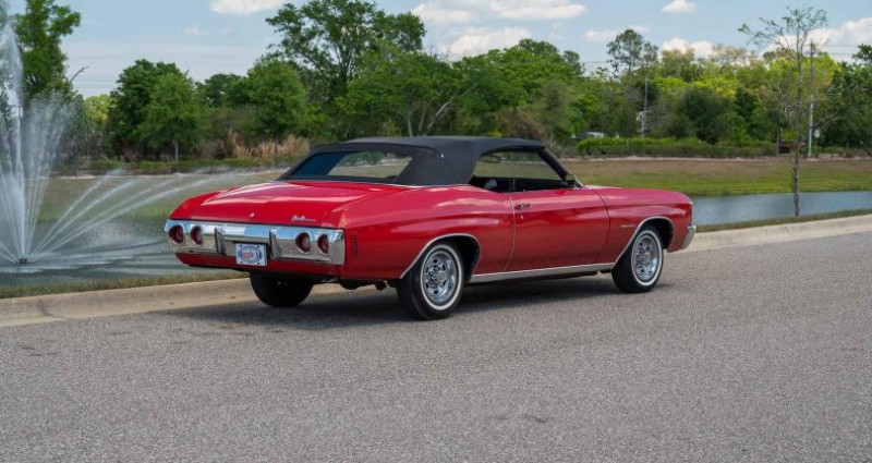 1971 Chevrolet Malibu Chevelle Convertible, Original Paint, Unmodified Classic, Cranberry Red, Black Interior, Automatic Transmission, RWD, 307 V8 Engine, 51, 963 Mileage, Original 15-inch wheels, Rare front and rear bumper guards, Black power convertible top, Factory Black Power Convertible Top, Original 307 Automatic Transmission, RWD, 307 V8 Engine, Original 15-inch wheels, Rare front and rear bumper guards. Provenance : Florida. Disponibilité : environ 7 semaines, clés en main. 63 500 € tout compris (importation, taxes, procédure d'immatriculation). Annonce publiée le 27/11/2025