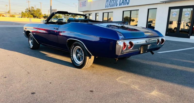 1. Marque : Chevrolet2. Modèle : Chevell Convertible3. Année de fabrication : 19714. Couleur extérieure : Bleu métallisé5. Couleur intérieure : Noir6. Type de carrosserie : Cabriolet7. Boîte de vitesses : Automatique8. Moteur : 350 V89. Freinage : Poids lourds Wilwood avec un régulateur de freinage et une pompe de frein mère neuve10. Intérieur : Sièges noirs en cuir pour deux et plate-forme centrale11. Jantes : American Racing avec pneumatiques BFGoodrich Raised White Letter12. Options supplémentaires : Tuyaux d'échappement, carburateur amélioré, distributeur d'allumage HEI, couvre-toit convertible électrique, intake en aluminium13. Suspension : Autorisé concessionnaire de suspension RideTech14. Régulateur de température : Autorisé concessionnaire Vintage AC15. Pieds de frein avant : Wilwood16. Avertissement : Le véhicule est vendu tel quel, sans aucune garantie. Toute responsabilité pour la description, l'authenticité, l'authenticité ou les défauts est absente du vendeur. Le client doit vérifier toutes les revendications et spécifications avant l'achat.. Provenance : Florida. Disponibilité : environ 7 semaines, clés en main. 54 000 € tout compris (importation, taxes, procédure d'immatriculation). Annonce publiée le 03/12/2025