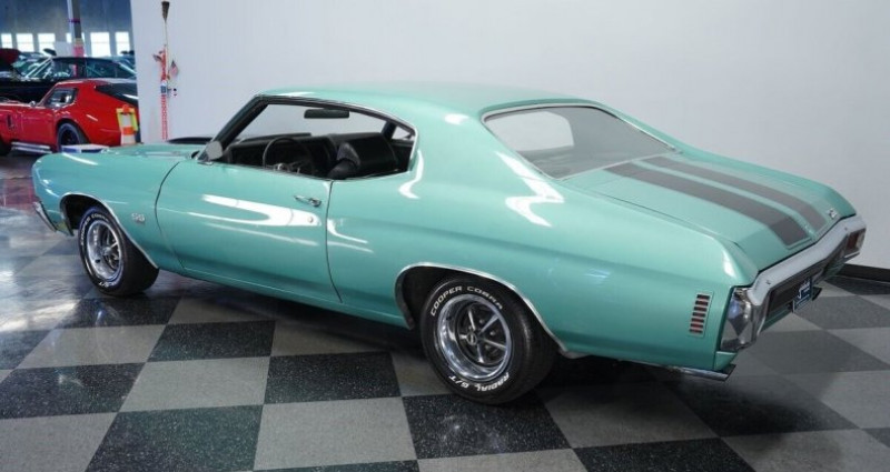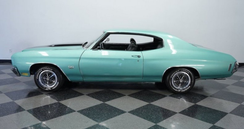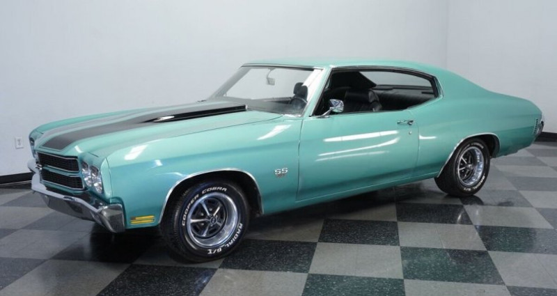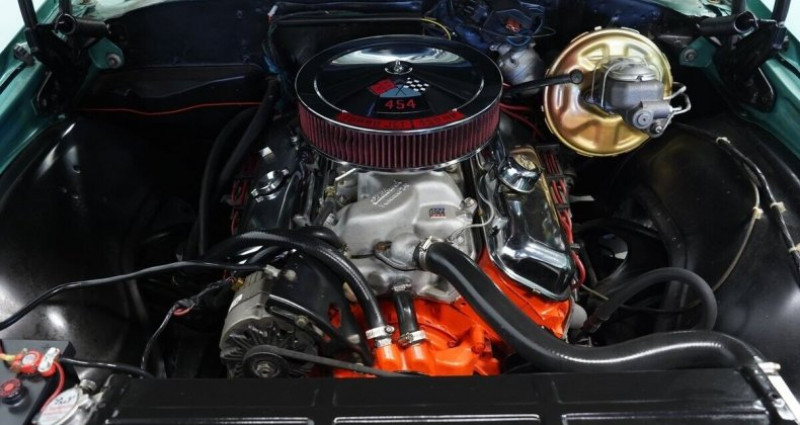 454 V8TH350 3-speed automatic transmissionBrawler 4-barrel carburetorEdelbrock Performer 2.0 aluminum intake manifoldPower brakesChampion aluminum radiator with dual electric fansHedman headersFront disc brakesDual exhaust with chrome tipsQA1 rear shocks12-bolt rear endMisty Turquoise paintBlack SS stripes14 SS wheels235/60R14 Cooper Cobra tiresSS454 emblemsChrome bumpers & trimClear lights & lensesFresh weather-strippingBlack Interior with bucket seatsClean dash with clear gaugesPower SteeringCenter console with horseshoe shifterUnder-dash secondary gauges (temp, volt, oil)Tidy carpet, headliner & sun visorsFront seatbelts4-speed automaticRWD83, 222 milesVIN : 136370A1062844627-TPA1970 Chevrolet Chevelle SS 454 Tribute. Provenance : Florida. Disponibilité : environ 7 semaines, clés en main. 54 000 € tout compris (importation, taxes, procédure d'immatriculation). Annonce publiée le 02/12/2025