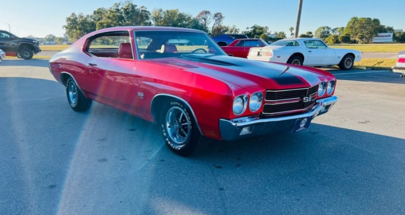 - Marque : Chevelle - Modèle : Coupe - Couleur extérieure : Rouge - Couleur intérieure : Rouge - Moteur : 454 Big Block V8 - Boîte de vitesses : Automatique Turbo 400 - Transmission arrière : 12-Bolt - Accessoires : Aluminum Billet Pulleys, Power Steering, Power Disc Brakes, Headers, High Rise Intake, Tilt Wheel, Braided Fuel Lines, Upgraded Gauge Pack, Red Procar Buck Seats, New Center Console et Staple Shifter, Factory Style SS Wheels, Raised White Letter Tires - État : Sleeper - Options disponibles : Vintage AC, RideTech Suspension, CVF Racing, Dakota Digital Gauges (par notre service de réparation). Provenance : Florida. Disponibilité : environ 7 semaines, clés en main. 67 500 € tout compris (importation, taxes, procédure d'immatriculation). Annonce publiée le 06/12/2025