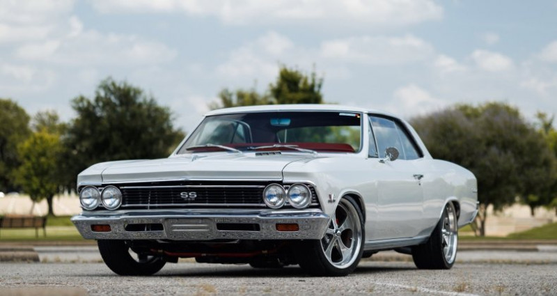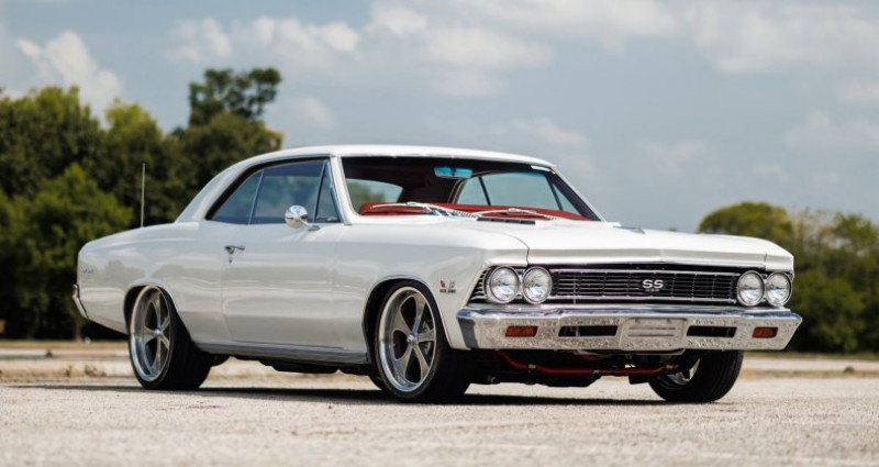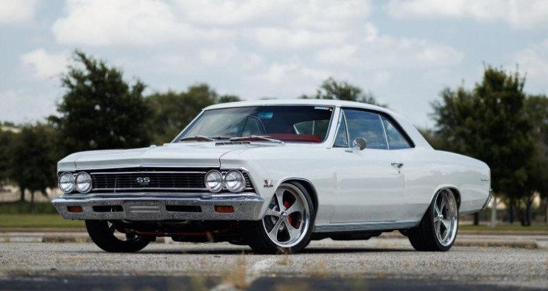 - Année : 1966 - Marque : Chevrolet - Modèle : Chevelle - Carrosserie : 2D Coupe - Couleur extérieure : Blanche - Couleur intérieure : Rouge - Moteur : 454 CID GM V-8 - Boîte de vitesses : Manuelle Muncie 4-Speed - Transmission : RWD - Kilométrage : 1 111 miles - Suspension : UMI Performance (avant et arrière) - Freins : Wilwood Power 4-Wheel Disc Brakes - Radiateur : Aluminium - Conditions : Restauration complète - Pneus : 18 et 20 pouces Ridler (225/40/18 avant, 285/30/20 arrière) - Options : Vintage Air Air Conditioning, Dakota Digital Dash, Custom Autosound Radio AM/FM/AUX, Speakers RGB dans le coffre, Bucket Seats et console rouges, Seatbelts rouges correspondant, Dual Flowmaster Mufflers, Millennium Industries Assembly Manual inclus. Provenance : Texas. Disponibilité : environ 7 semaines, clés en main. 89 000 € tout compris (importation, taxes, procédure d'immatriculation). Annonce publiée le 08/12/2025
