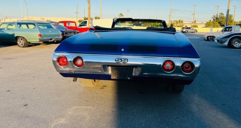 - Marque : Chevrolet - Modèle : Chevelle - Type de carrosserie : Cabriolet - Année : 1971 - Couleur extérieure : Bleu métallisé - Couleur intérieure : Noir - Moteur : 350 V8 - Boîte de vitesses : Automatique - Freins : Wilwood disques avec un nouveau booster de frein et un cylindre maitre neuf - Pneus : BFGoodrich sur des roues American Racing avec des bandes blanches élevées. Provenance : Florida. Disponibilité : environ 7 semaines, clés en main. 53 500 € tout compris (importation, taxes, procédure d'immatriculation). Annonce publiée le 10/12/2025