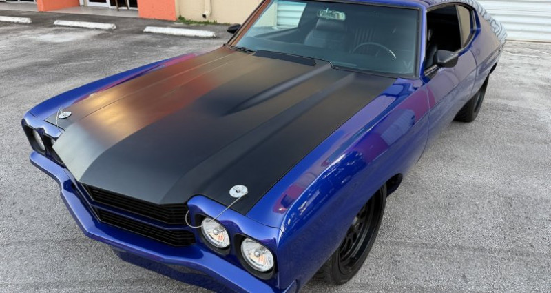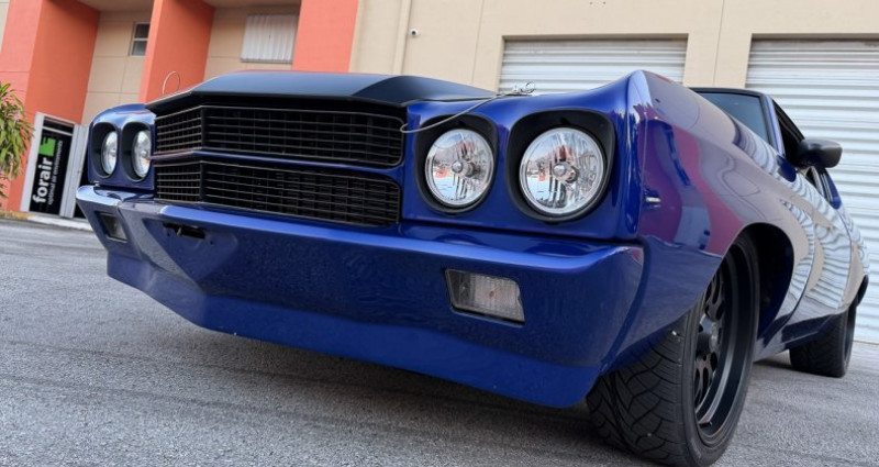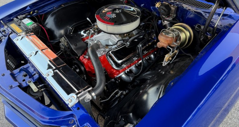 - Couleur extérieure : Bleu - Couleur intérieure : Noir - Type de carrosserie : 2 portes coupé - Transmission : Automatique - Type de carburant : Essence - Moteur : 396cid - Kilométrage : 11 419 - Drivetrain : Propulsion arrière - Équipements : Freinage assisté, Freinage à disques à 4 roues, Intake à cowl, Hei ignition, Edelbrock intake, Edelbrock carburateur, Dual fans électriques, Freinage assisté, Signature series slotted et disques de freinage, Radiateur en aluminium, Tuyaux d'échappement en acier inoxydable de 2, 5 pouces, Hotchkis barres de stabilisation - État : Bon état général. Provenance : Florida. Disponibilité : environ 7 semaines, clés en main. 71 500 € tout compris (importation, taxes, procédure d'immatriculation). Annonce publiée le 09/12/2025