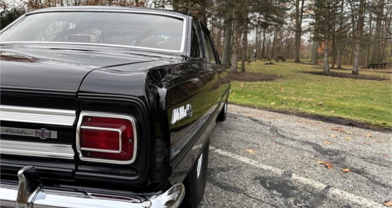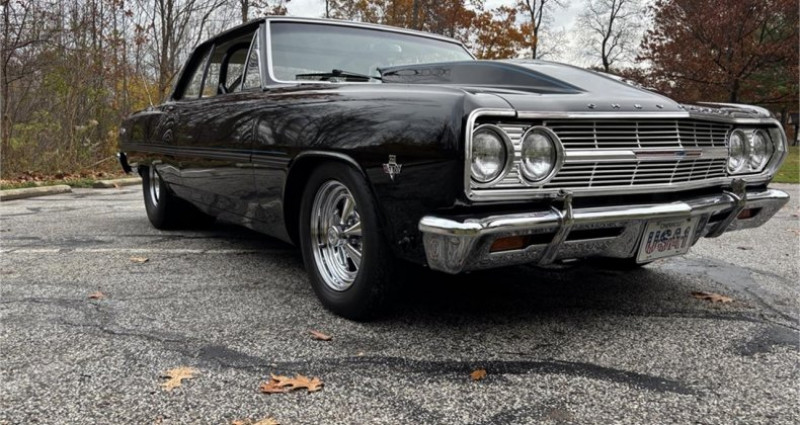 - Marque : Chevrolet - Modèle : Chevelle - Année : 1965 - Couleur extérieure : Noir avec pinstriping bleu - Intérieur : Cuir et vinyle brun - Moteur : 350ci V8 - Transmission : 3-vitesse Turbo Hydra-Matic 400 automatique - Roues : Cragar 15x7 (avant) et 15x14 (arrière) - Pneus : Mickey Thompson radiales 26x6 (avant) et 31x10 (arrière) - Odomètre : 77, 545 miles (kilométrage mileage-exempt). Provenance : Ohio, USA. Disponibilité : environ 7 semaines, clés en main. 56 500 € tout compris (import, taxes, procédure d'immatriculation). Annonce publiée le 11/12/2025
