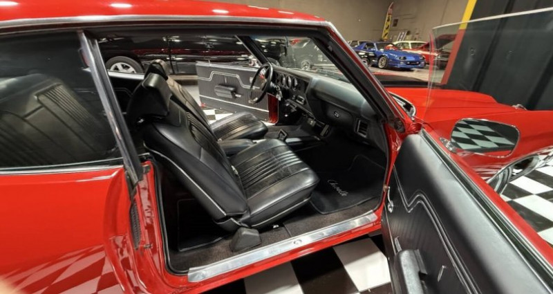 - Marque : Chevrolet - Modèle : Chevelle - Année : 1972 - Type de carrosserie : Coupe - Moteur : V8 LS3 402ci - Boîte de vitesses : Automatique 3-vitesse - Transmission : 12BOLT - Couleur extérieure : Orange Flame - Intérieur : Noir - Kilométrage : 27 000 miles - Travaux : Peinture rouge avec bandes noires en 2002, refurbishment en 2002 - Équipements : Stereo Custom Autosound avec entrée auxiliaire, freinage assisté, freins à disque avant, jantes SS, pneus neufs, capot de course avec pinces de capot, échappement Flowmaster - Titre propre en main. Provenance : Illinois. Disponibilité : environ 7 semaines, clés en main. 67 500 € tout compris (importation, taxes, procédure d'immatriculation). Annonce publiée le 12/12/2025