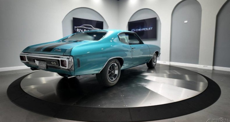 - Marque : Chevrolet - Modèle : Chevelle - Année : 1970 - Version : Super Sport - Couleur extérieure : Turquoise - Couleur intérieure : Noir - Siège : Sièges baquets noirs - Moteur : 454 V8 TRH suffix code - Carburateur : Holley 750 CFM double pumper 4 barrel - Distribution : Accel HEI - Transmission : Automatique TH400 - Arbre de transmission : 12 bolt - Freinage avant : Freinage à disques - Jantes : 15 Rally - Pneus : BF Goodrich Radial T/A - Options : Tachymètre à 6500 rpm, radio AM/FM, climatisation convertie en R134a, Protect-O-Plate - Vendu par : Sun Austin Chevrolet (ancien propriétaire plus de 26 ans). Provenance : Florida. Disponibilité : environ 7 semaines, clés en main. 76 500 € tout compris (importation, taxes, procédure d'immatriculation). Annonce publiée le 18/12/2025