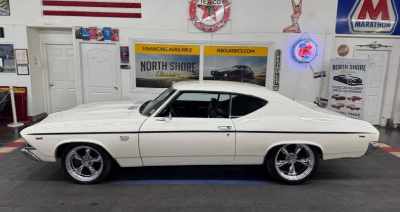 - Marque : Chevrolet - Modèle : Chevelle - Série spéciale : Super Sport - Année : 1969 - Moteur : 396 - Transmission : Automatique - Couleur extérieure : Blanche - Couleur intérieure : Noire - Siège : Banc avec levier de vitesses sur colonne - Options : Freinage assisté, freins à disque avant, freins à tambour arrière, climatisation après-marché, boîte de vitesses automatique, freins à disque avant / tambour arrière, direction assistée, cadre et plancher propres. Provenance : Illinois. Disponibilité : environ 7 semaines, clés en main. 53 500 € tout compris (importation, taxes, procédure d'immatriculation). Annonce publiée le 30/12/2025