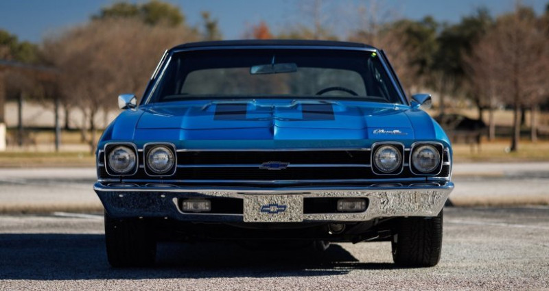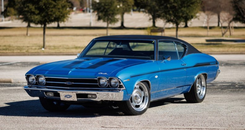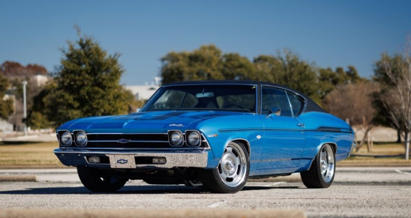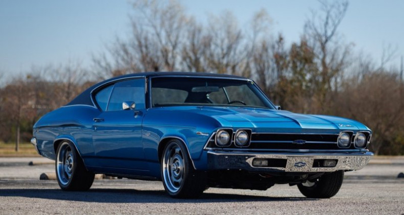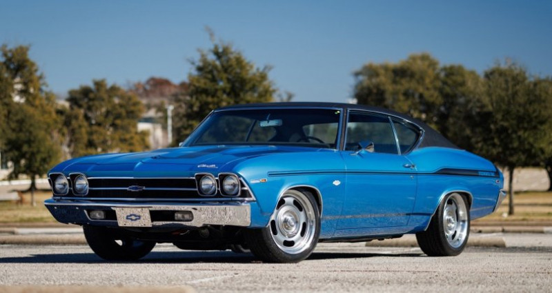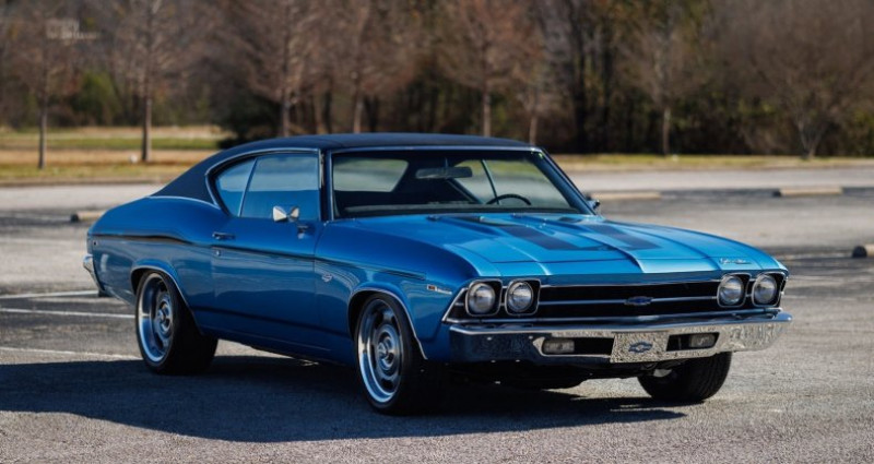 - Marque : Chevrolet - Modèle : Chevelle - Année : 1969 - Type de carrosserie : Coupe - Moteur : 427 CI V-8 - Boîte de vitesses : Automatique Turbo 400 - Transmission : RWD (Propulsion arrière) - Couleur extérieure : Bleu - Couleur intérieure : Noir - Intérieur : Nouveau, avec climatisation, sièges chauffants, volant, freins, direction assistée - Pneus : 235/45/18 (avant) et 275/40/18 (arrière) - Kilométrage : 1 111 miles (1 867 km). Provenance : Texas. Disponibilité : environ 7 semaines, clés en main. 90 000 € tout compris (importation, taxes, procédure d'immatriculation). Annonce publiée le 31/12/2025