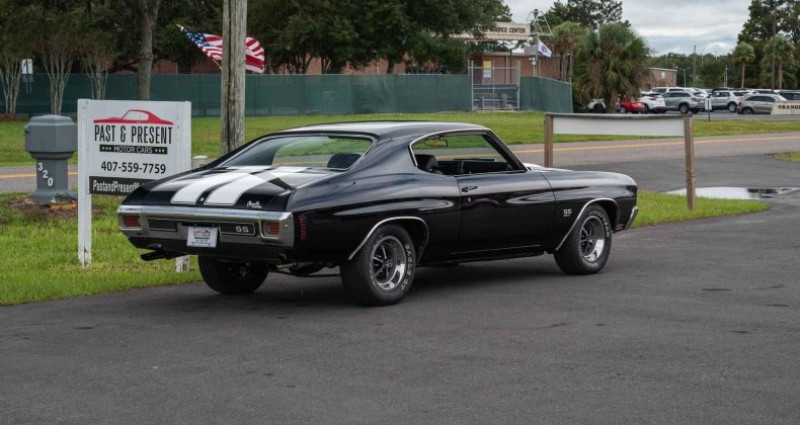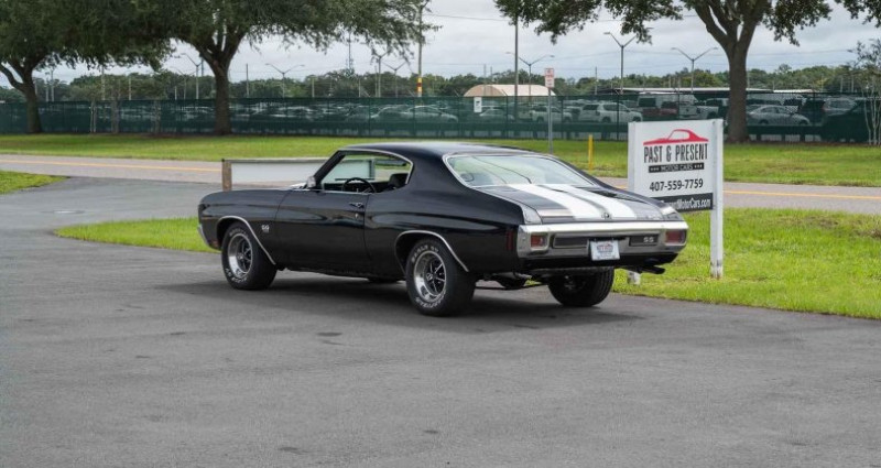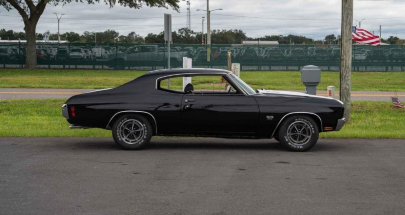 - Marque : Chevrolet - Modèle : Chevelle SS - Année : 1970 - Moteur : 396 cubic inch / 375 chevaux - Boîte de vitesses : Automatique - Transmission : RWD - Couleur extérieure : Noir Tuxedo - Couleur intérieure : Noir - Jantes : 15 SS - Pneus : Reproduction Goodyear Eagle GT - État : Très bien entretenu et présenté en qualité d'exposition - Kilométrage : 308 miles (non converti en kilomètres). Provenance : Florida. Disponibilité : environ 7 semaines, clés en main. 117 500 € tout compris (importation, taxes, procédure d'immatriculation). Annonce publiée le 31/12/2025